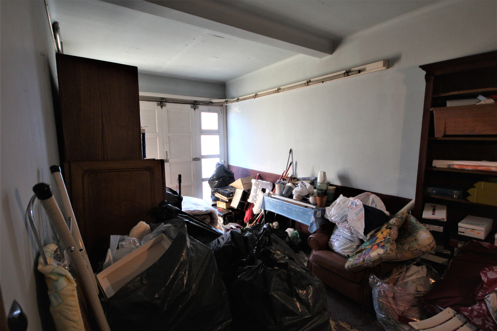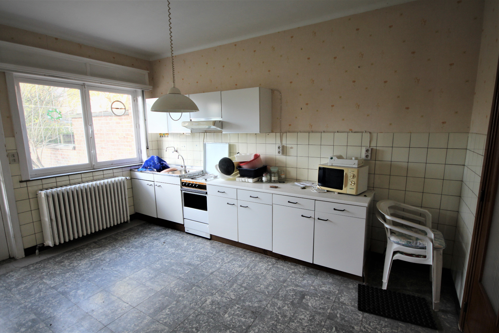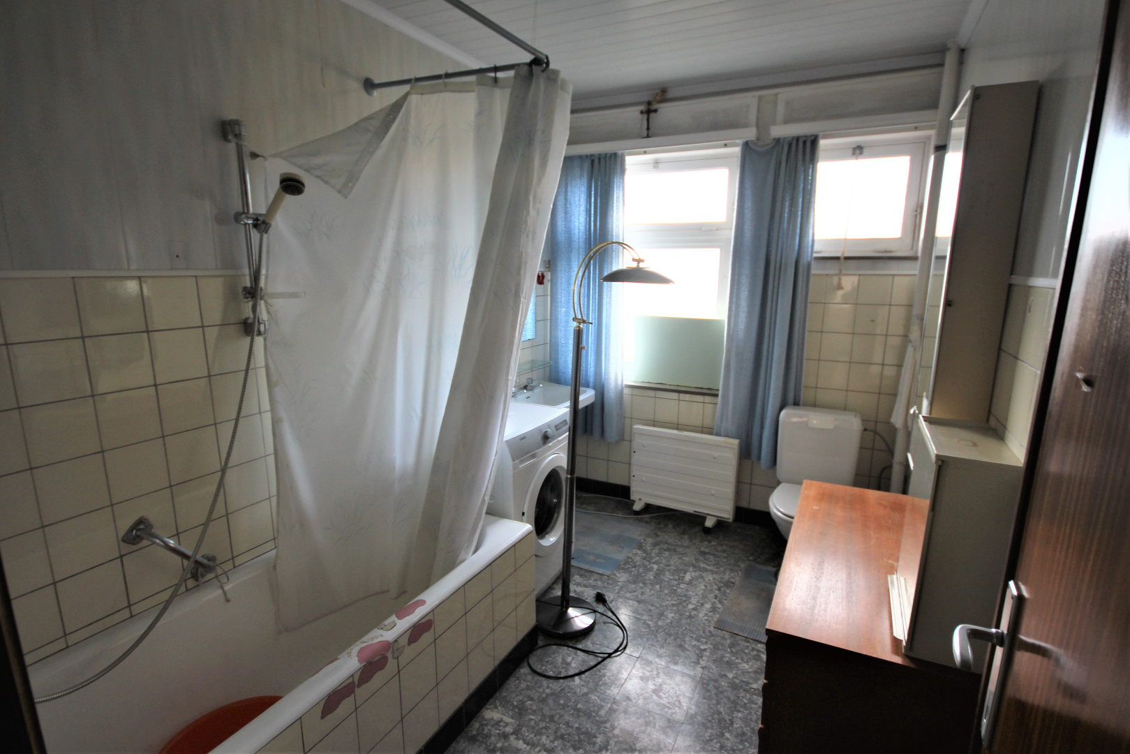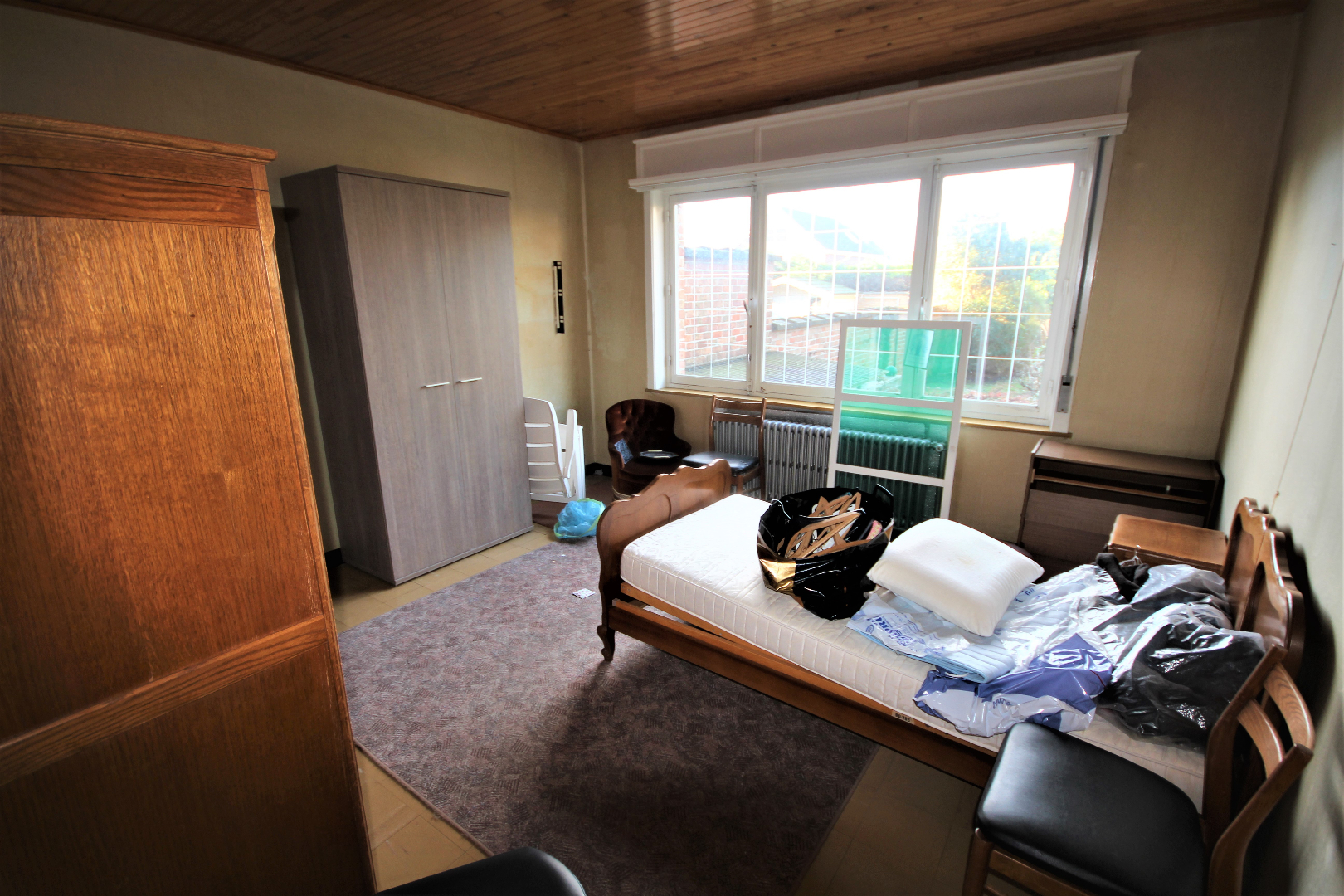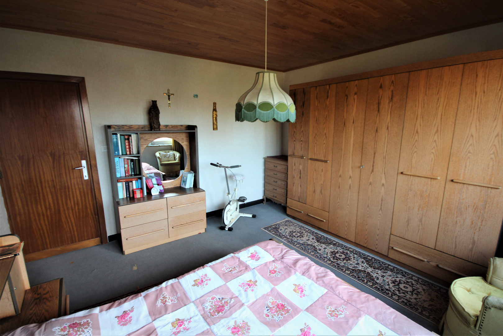 1ste & zolderverdiep: overloop + zolderluik,- kitchenette met onderkast + wit watersteen,- voor-slaapkamer (5,47 x 3),- * en appartement met hal + parlofoon,- living (4,92 x 4,27) met sierschouw + gaskachel,- keuken (4,49 x 3,19) met gaskachel en keukenblok (onder- en bovenkasten) + ingebouwde afwasbak, gasfornuis, dampkap, en frigo,- terras,- badkamer (3,27 x 2,11) met ligbad, w.c., lavabo, en gasgeiser,- en achter-slaapkamer (4,04 x 3,91),- * én grote zolderruimte (90 m²).
