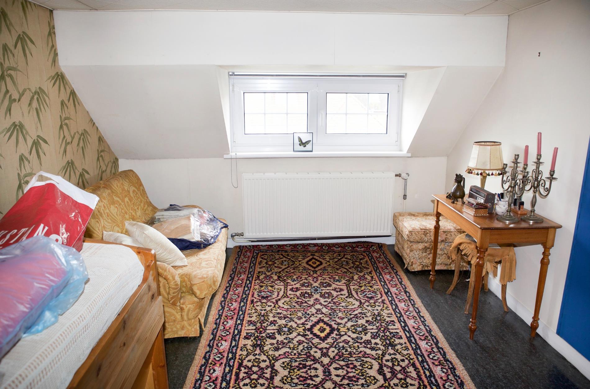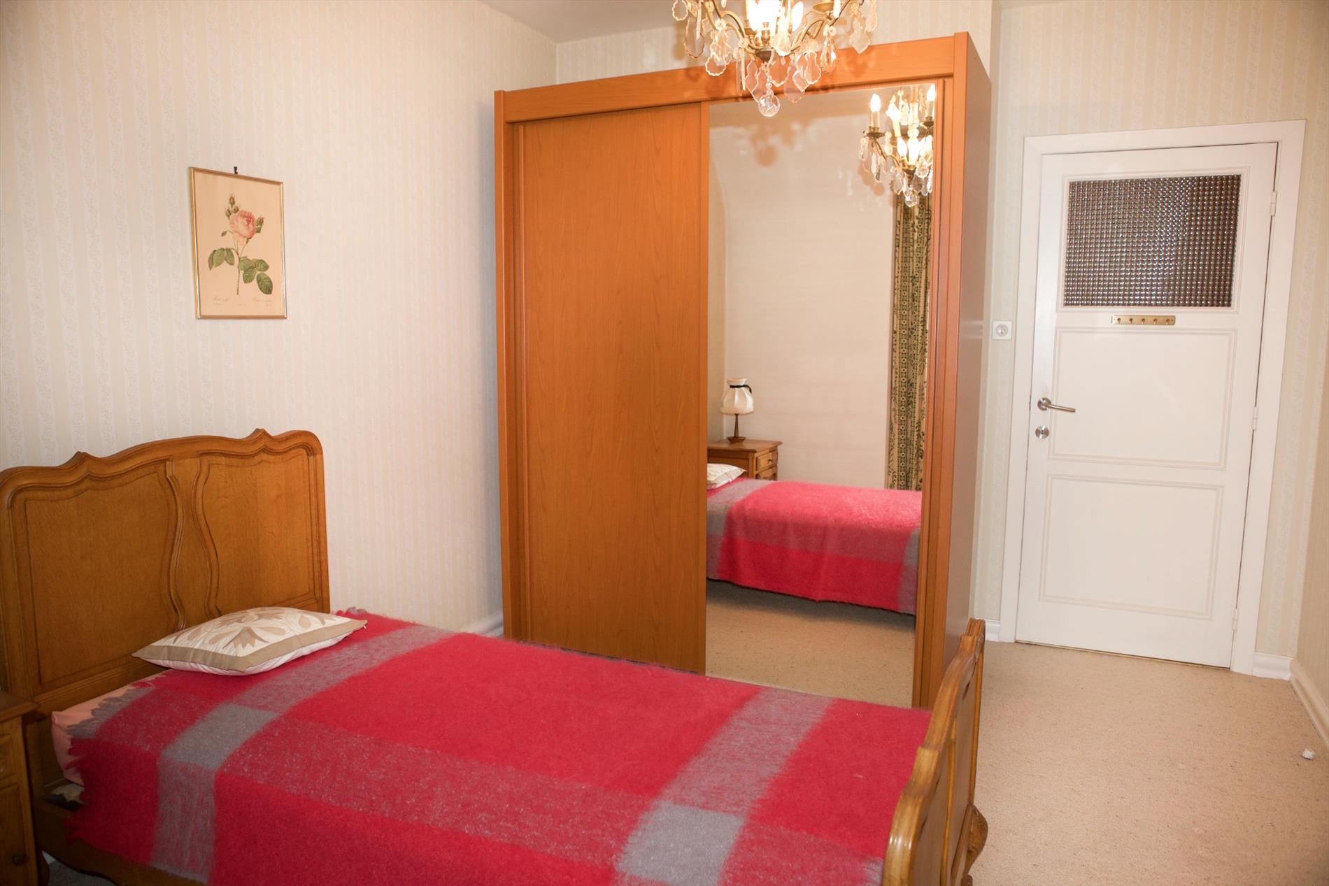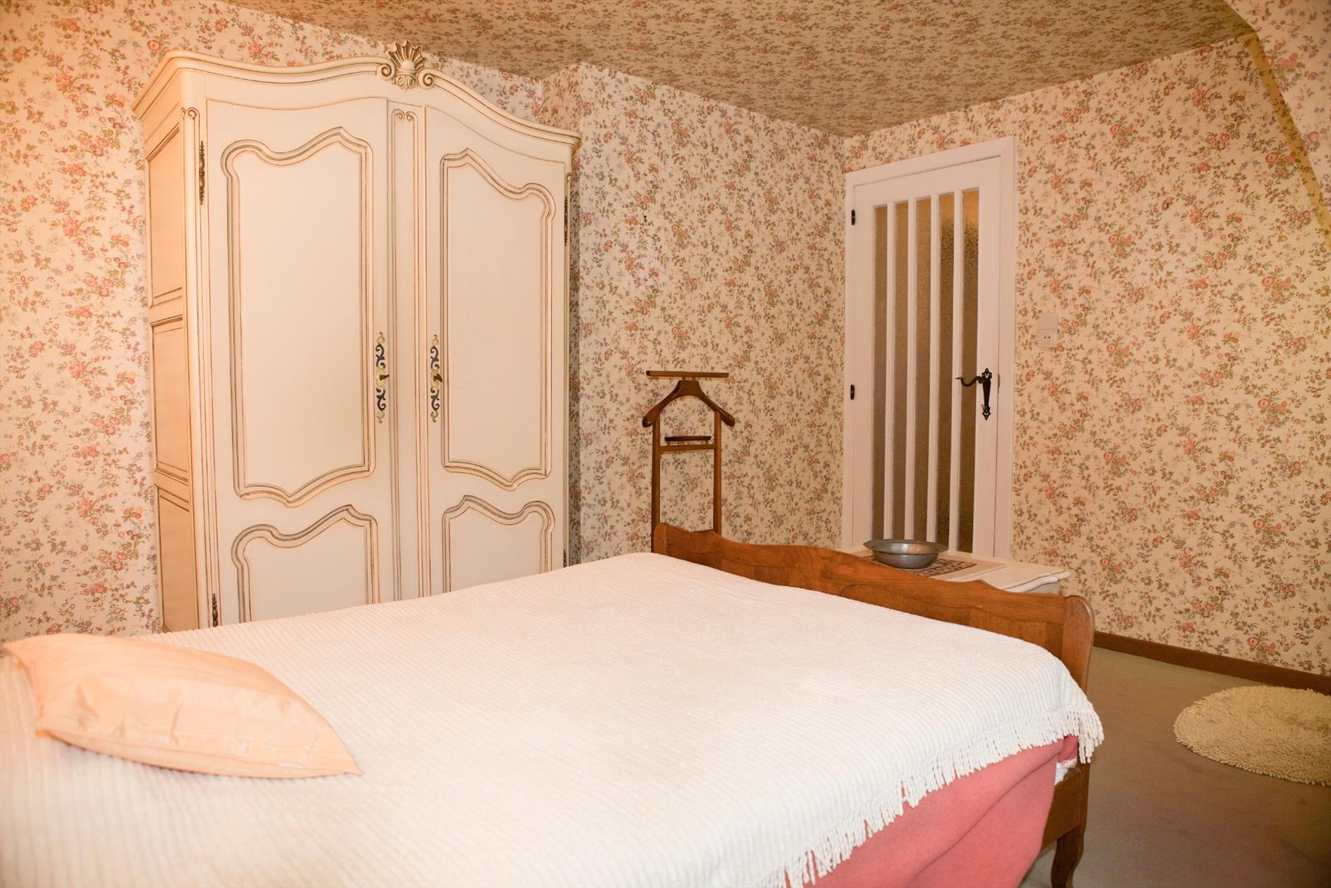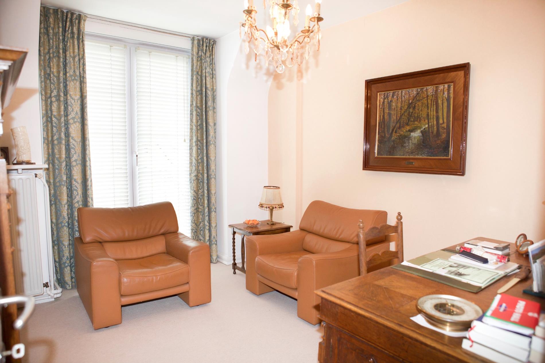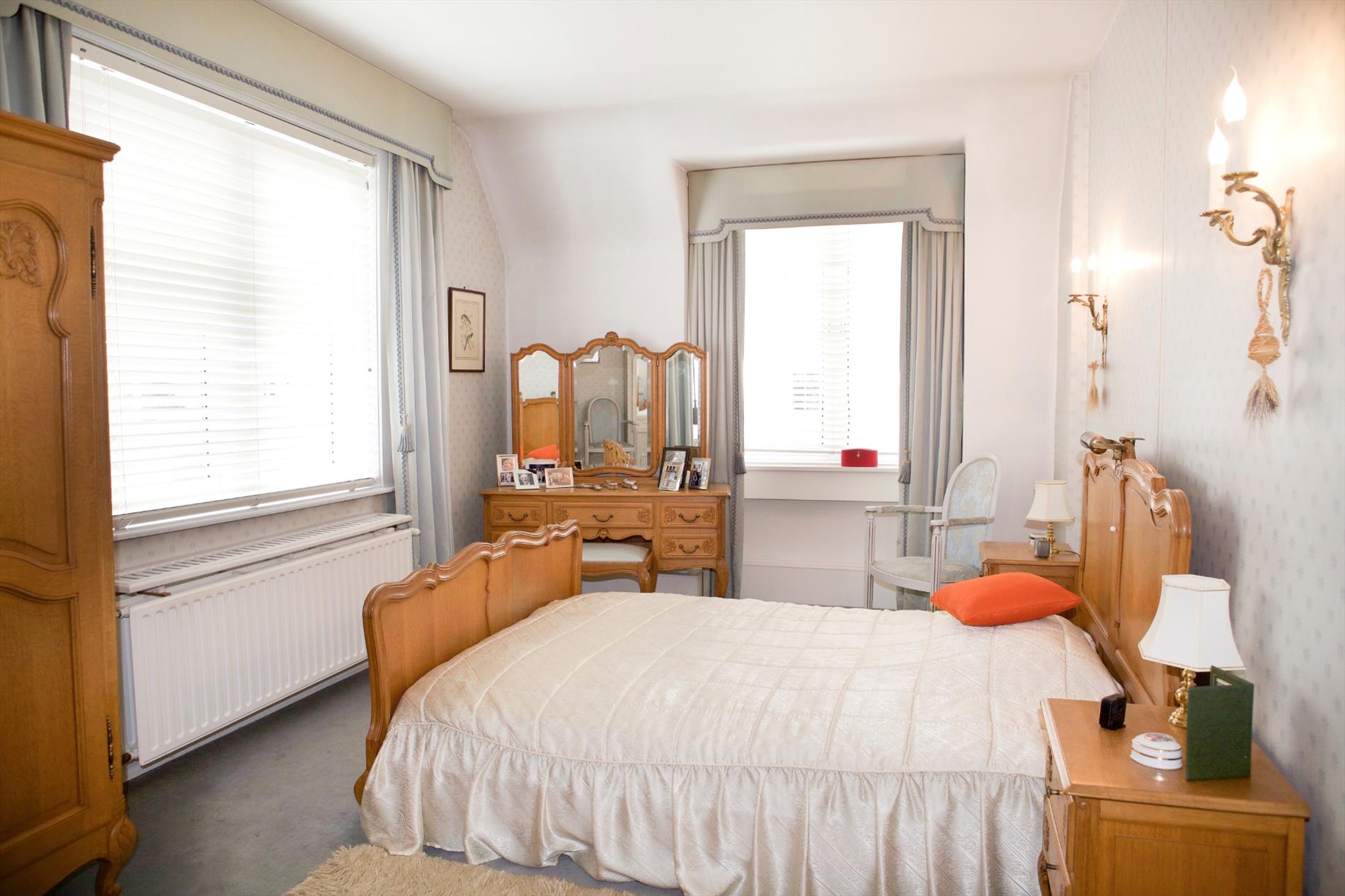 b) Verdiepingen: 1ste met: overloop (+ vaste zoldertrap),- badkamer (2 x 2 * met zitbad, en toiletmeubel + ingebouwde lavabo * marmeren wanden en vloer * plafond in kurk),- masterbedroom (5,50 x 3,10 * met ingemaakte kasten),- midden-slaapkamer (3,50 x 3,15 * nu bureau),- en 3de slaapkamer (3,50 x 3,15),- * en zolderverdiep: met overloop,- mansardekamer (4,20 x 3,15 * met ingemaakte kasten + standvenster),- 2de mansardekamer (4 x 3,45 * met lavabo + standvenster),- en opperzolder ;