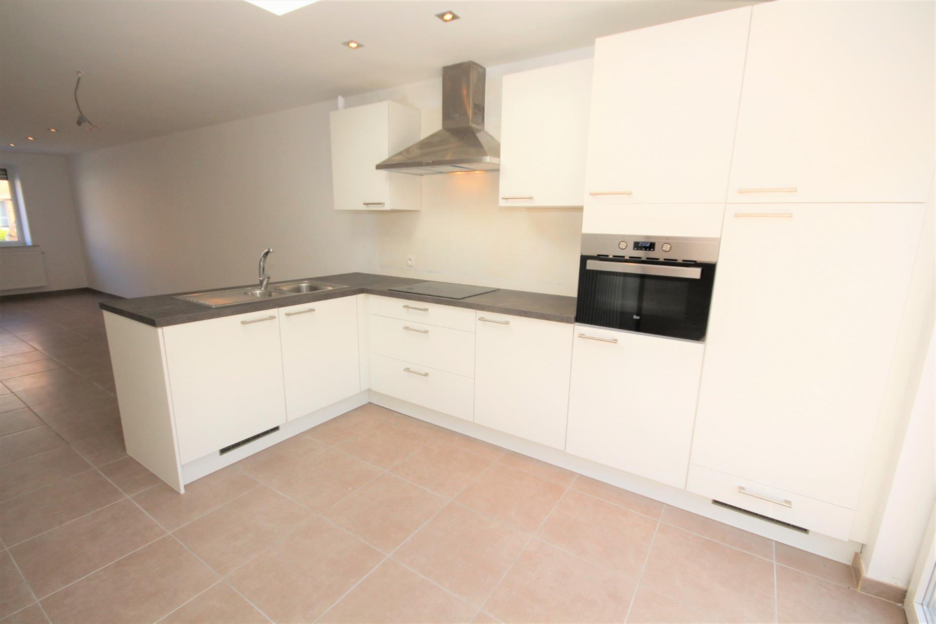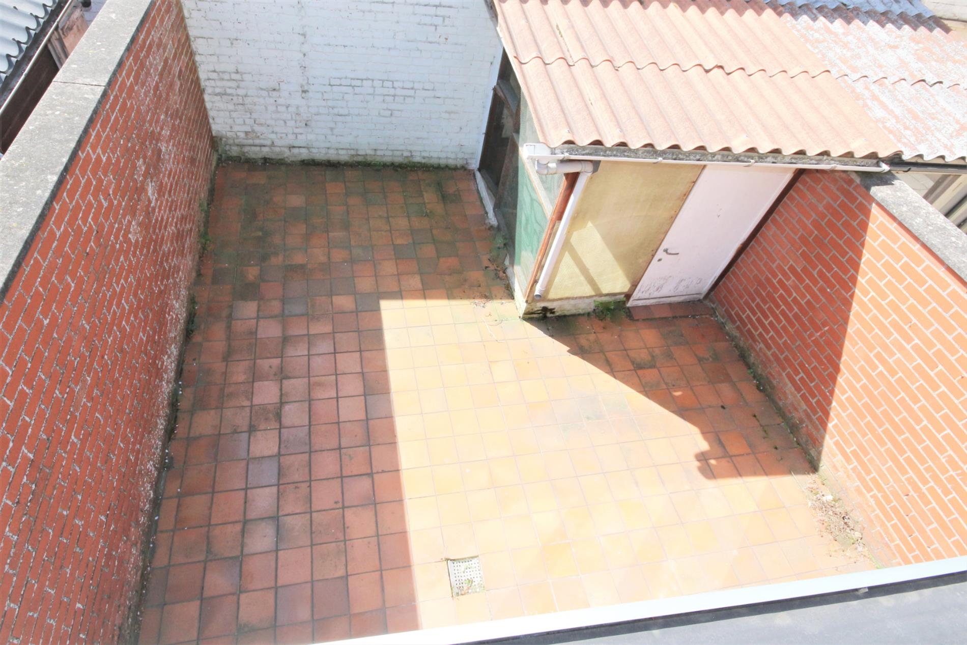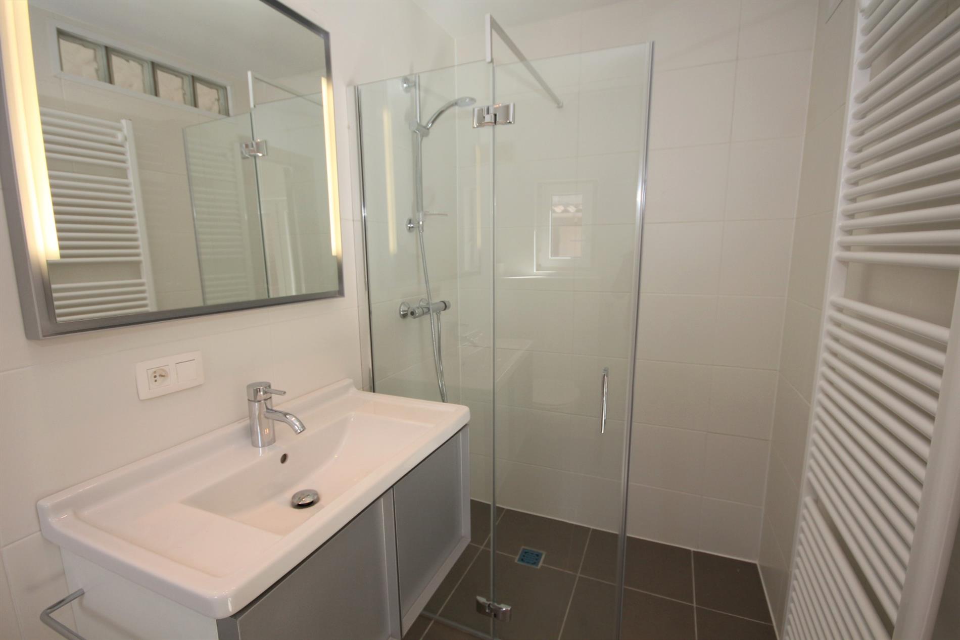 a) gelijkvloers : hall met trap en berging,- ruime lichtrijke woonkamer (4,75 x 3,35),- vernieuwde open keuken (3,65 x 3,21) voorzien van L-vormige keukenblok met kasten, keramische kookplaat, koelkast, dampkap, dubbele spoelbak,- vernieuwde badkamer (2,81 x 1,60) met inloopdouche, wasmeubel met lavabo en toilet,- stookruimte met CV en was aansluiting,- zonnige koer (4,85 x 5,30) met berging,- oprit (4,20 x 4,80);