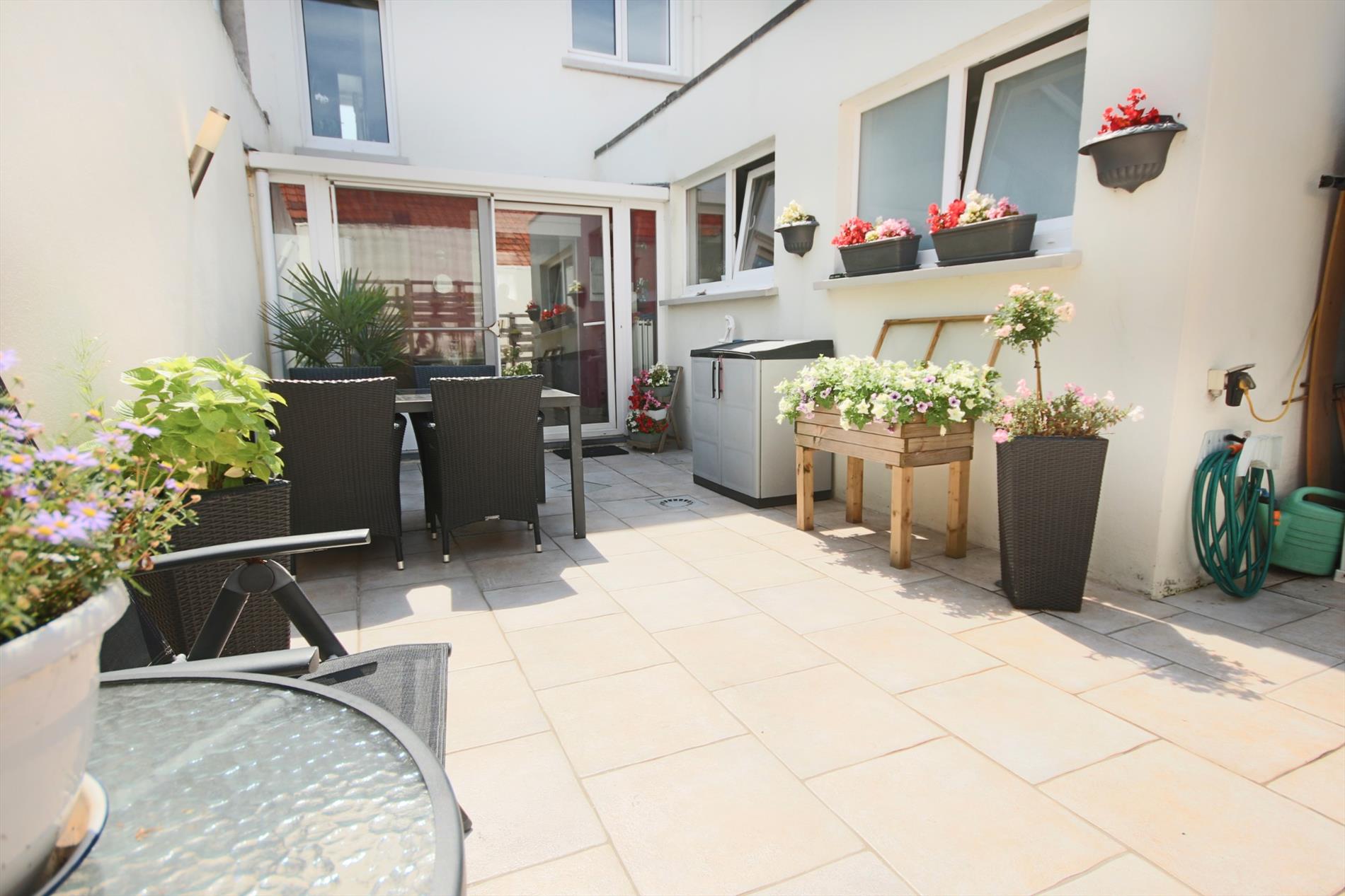 Verzorgde woning, stevig en op traditionele wijze gebouwd in 1930 en gerenoveerd in 2005, op een perceel bouwgrond van 114 m², met gevelbreedte van 5,52 m op diepte: 20 m. De woning heeft een bebouwde oppervlakte van 72 m², een benutbare oppervlakte van 150 m² en een volume van 462 m³. Gebouwd met houten roostering op de verdiepingen. Authentieke voorgevel, in een rode gevelsteen en geschilderde achtergevel. Deur- en vensterdorpels in harde blauwsteen. Nieuwe ramen in kunststof (PVC wit), voorzien van dubbele beglazing + rolluiken. Vernieuwd zadeldak, belegd met gegolfde, rode dakpannen (in gebakken aarde), voorzien van onderdak (menuiserith) + isolatie en 3 nieuwe veluxramen. Het zonneterras is betegeld en heeft een klein tuintje + buitenverlichting. Tegelvloeren op het gelijkvloers en in de badkamer boven. Laminaat parket op de verdiepingen. Nieuwe deuren. Voorzien van stadswater, nieuwe elektriciteit + leidingen (enkel tarief), teledistributie, internet, telefoon, riolering en centrale verwarming (aardgas).