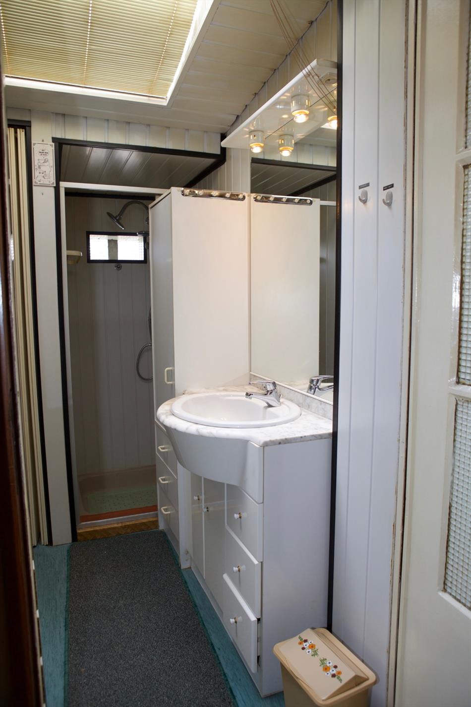 a) gelijkvloers : inkomhall met trap (hout),- woonkamer (29,70 m²) met nieuwe gaskachel,- uitbouw met keuken (2,97 x 2,66 * vernieuwd in 2004) met gaskookplaat, microgolf, dampkap, oven, spoelbak, koelkast en koepel * zicht op de zonnige koer,- badkamer (2,68 x 1,77) met douche, meubel + lavabo, toilet,- koer (8,91 x 4,78) met beplanting,- buitentoilet,- achterhuis (4,34 x 4,80) met aansluiting kachel;