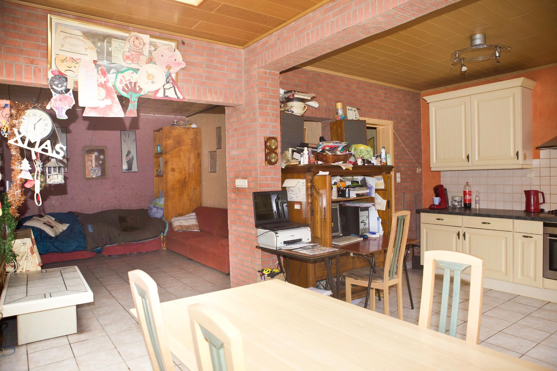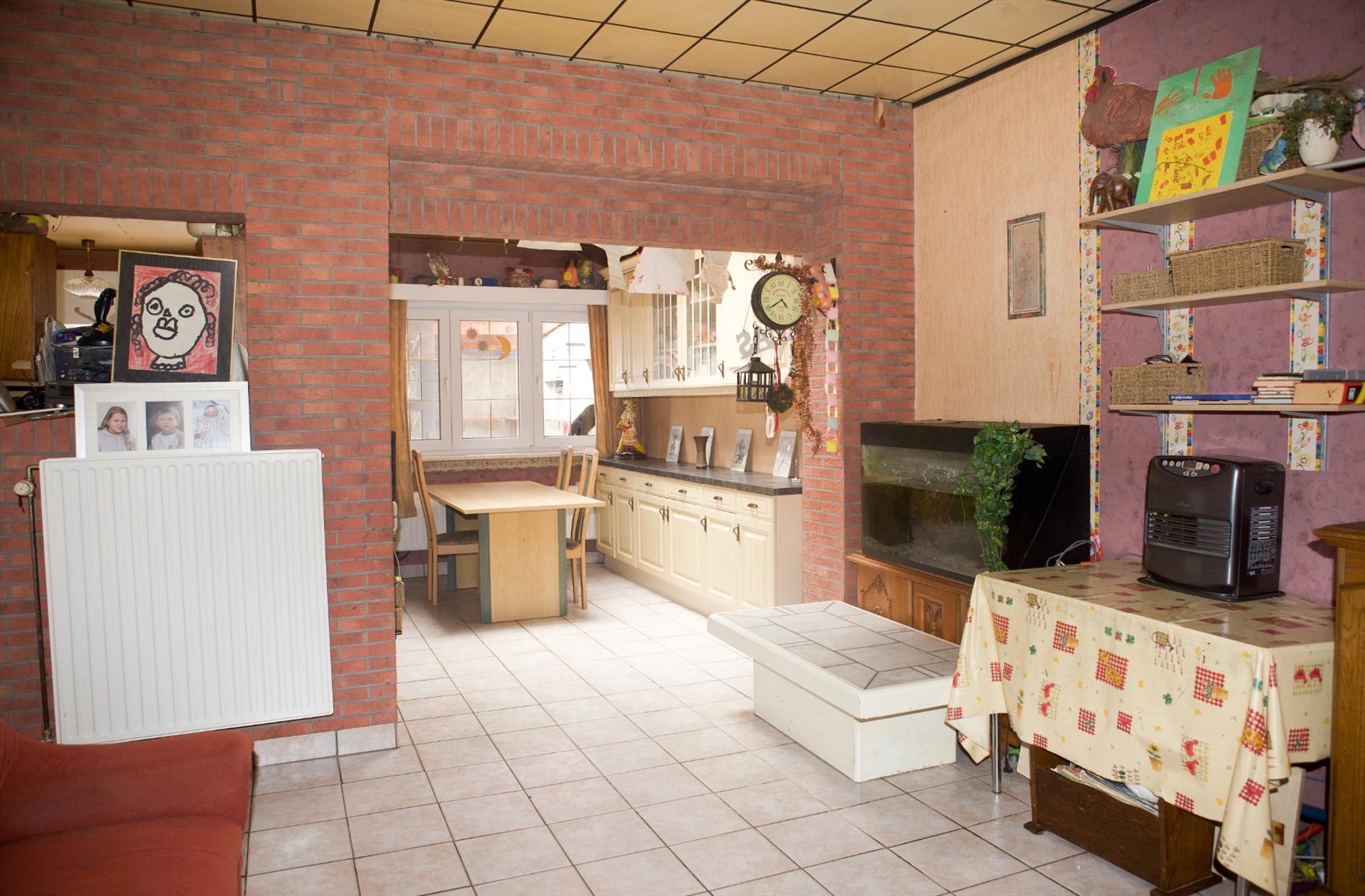 Welgelegen woonhuis, stevig en op traditionele wijze gebouwd in 1955, op een perceel bouwgrond van 108 m², met een breedte van 6 m. op een diepte van 18 m. Bebouwde oppervlakte: 88 m², bruikbare vloeroppervlakte: 138 m², beschermd volume: 414 m³. Stevige fundering en vloerplaat in gewapend beton. Houten roostering + plankenvloeren (belegd met laminaat en/of vinyl). Verzorgde voorgevel, in een paramentsmetselwerk van gele gevelsteen + gevelplint in arduin. Deur- en vensterdorpels in harde blauwsteen. Verzorgd buitenschrijnwerk in kunststof (PVC) + dubbele beglazing + PVC-rolluiken). Nieuwe voordeur in PVC. Geautomatiseerde sectionale poort. Verzorgd zadeldak, belegd met platte, rode Pottelbergse pannen (in gebakken aarde) + onderdakplaten (menuiserite) + perfect geïsoleerd, en met 3 veluxramen. Zinken dakgoten (bekleding in witte PVC). De dakvlakken, wanden, en vloeren van de zolder zijn afgewerkt met OSB-platen. Mooie keramische tegelvloeren in alle vertrekken beneden. Voorzien van stads- & regenwater, elektriciteit, teledistributie, telefoon, parlofoon, centrale verwarming (d.m.v. aardgas-wandgenerator), en riolering. Vrij bij akte.