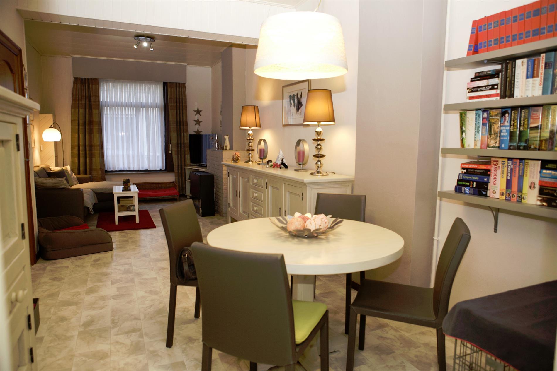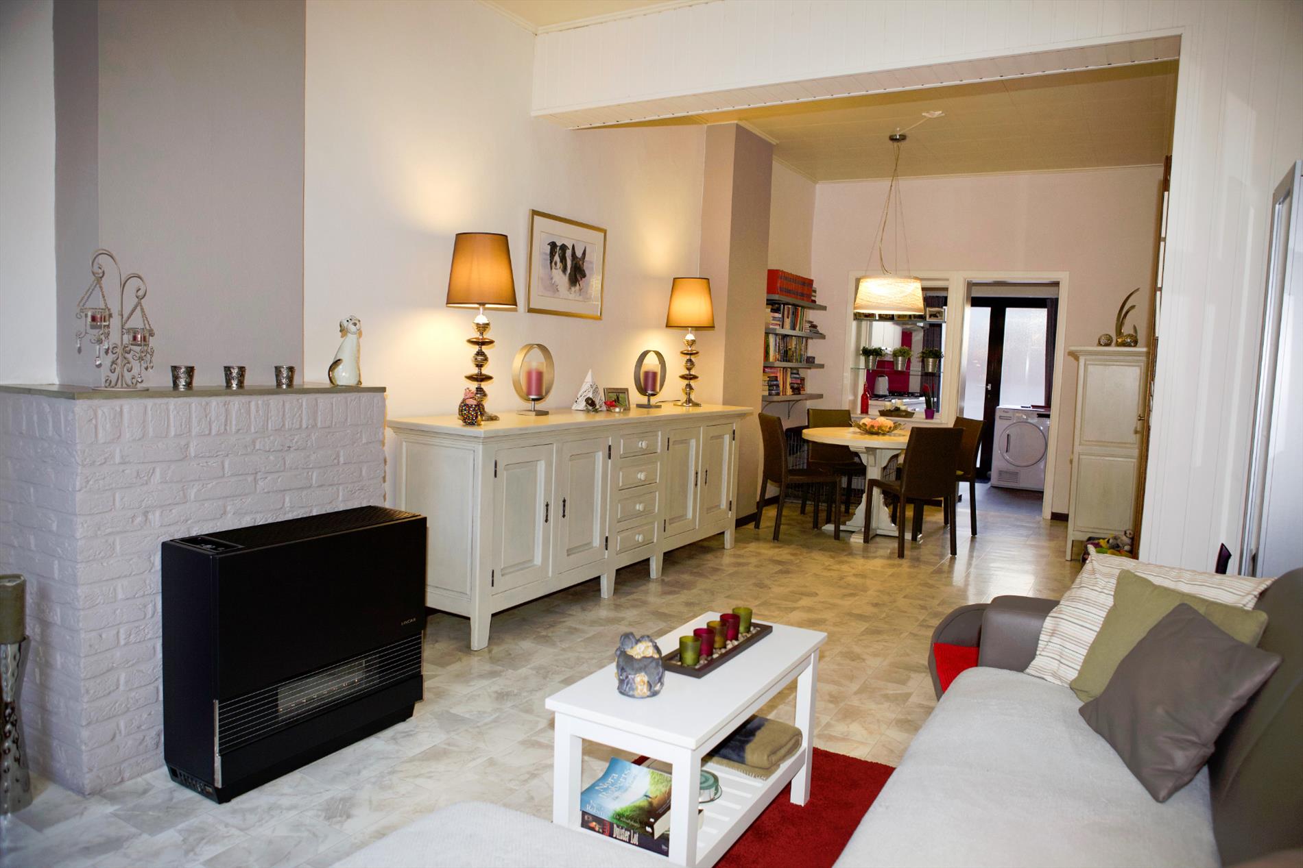 Verzorgde woning, stevig en op traditionele wijze gebouwd met een gevelbreedte van 5 m en bouw diepte van 8,90 m. De woning heeft een benutbare oppervlakte van 164 m² en volume van 453 m³ met kelder en roostering op de verdiepingen. Verzorgde buitengevels, in een paramentmetselwerk van beige genuanceerde gevelsteen. Deur- en vensterdorpels in harde blauwsteen. Verzorgd buitenschrijnwerk in aluminium, voorzien van dubbele beglazing. Nieuw zadeldak, belegd met bruin gegolfde dakpannen (in gebakken aarde), voorzien van onderdak (menuiserithplaten) en veluxraam. Vernieuwd dak boven de annexe. Zinken dakgoten en dito afleidingen vooraan en achteraan in PVC. Zonnige koer en terras met nieuwe tegels + balustrade. Tegelvloeren in de kelder, inkomhal, wasplaats en badkamer. Vinylvloerbekleding in de rest van de woning. Voorzien van stadswater, elektriciteit, teledistributie, telefoon, riolering en gaskachels (nieuwe in de living), warm water met nieuwe elektrische boiler.
