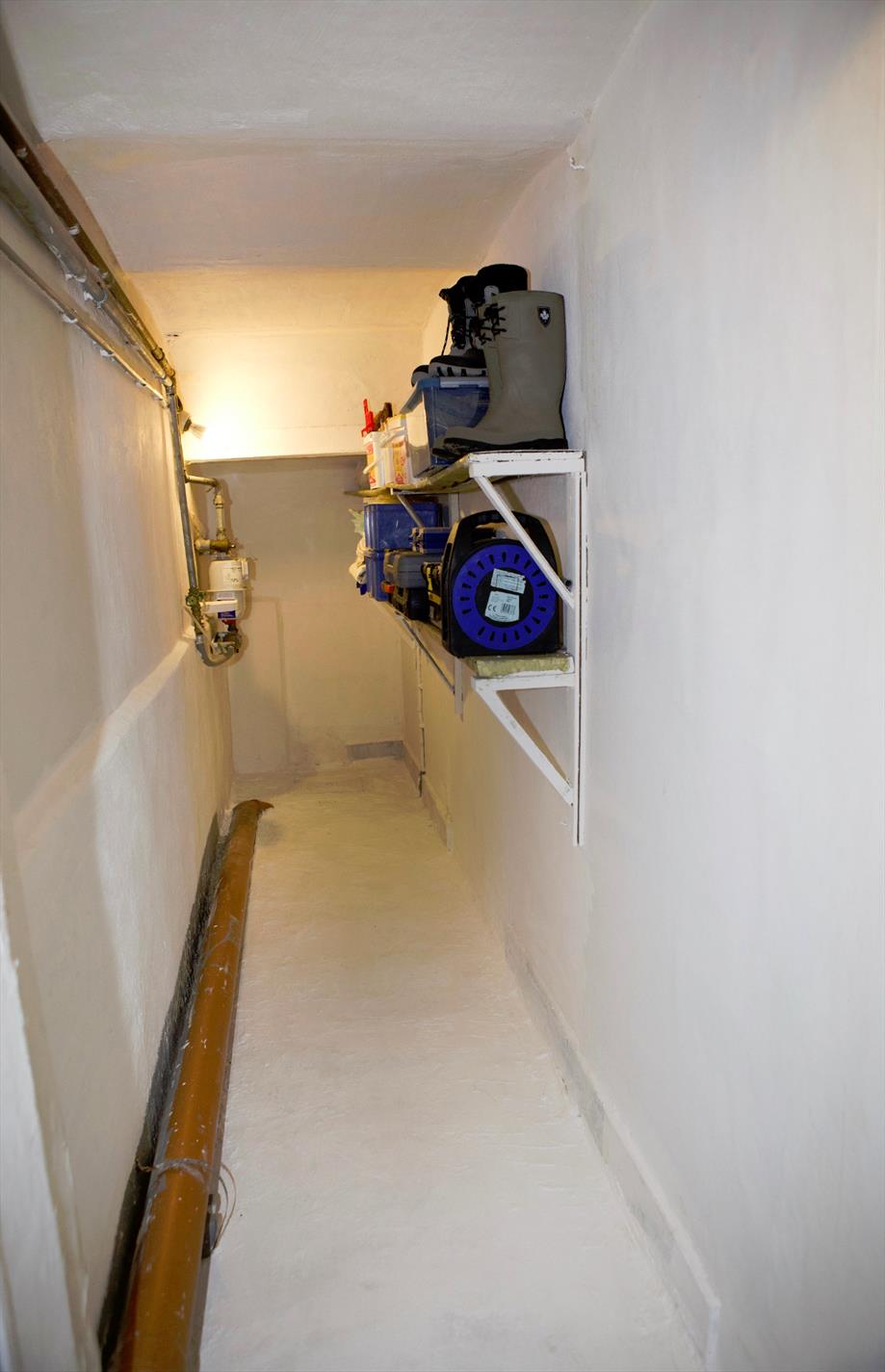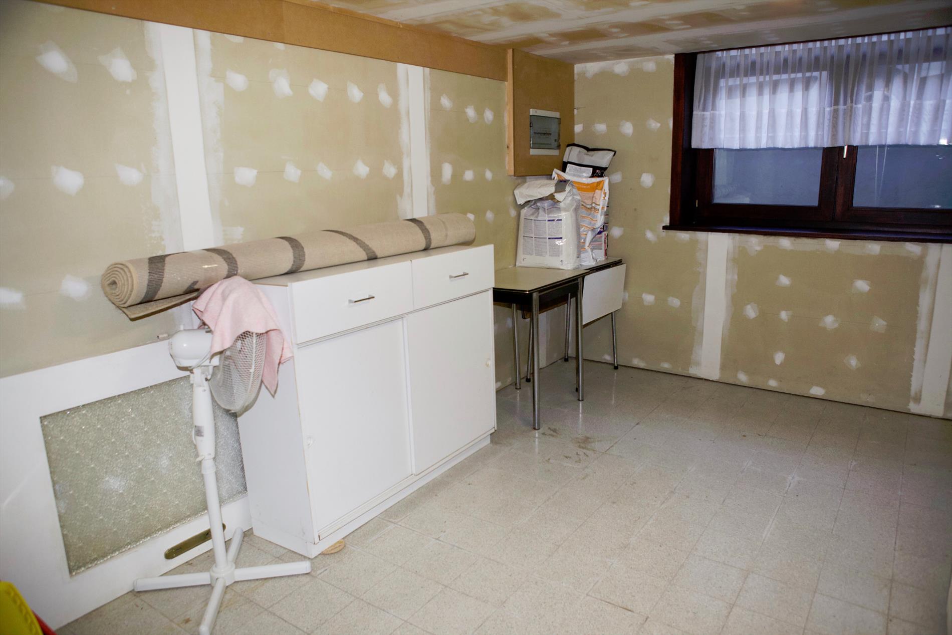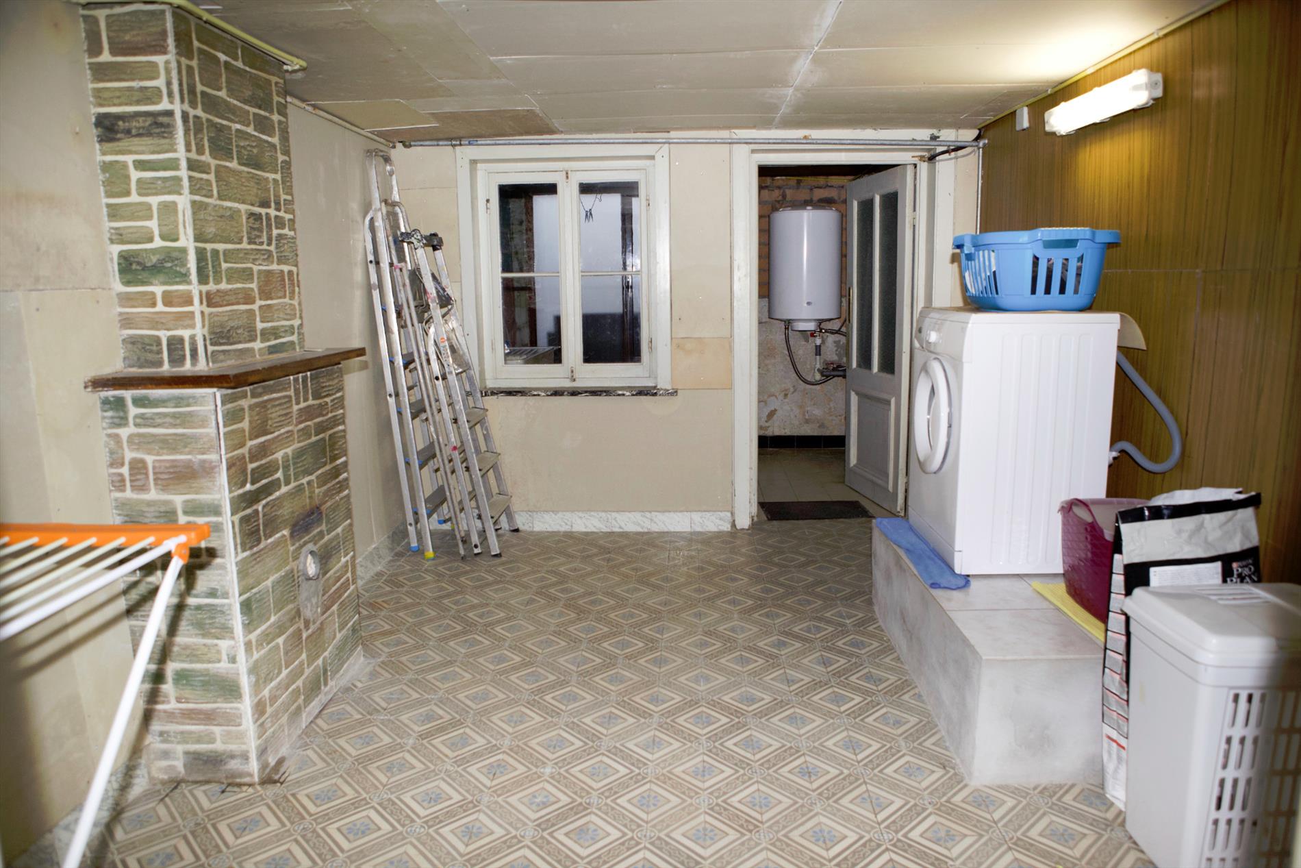 d) kelder (8,36 x 4,53) met tellerkelder, voorplaats met vernieuwde zekeringskast elektriciteit en achterplaats (3,08 x 2,80) met aansluiting voor wasmachine en 2de achterplaats met afgietbak,- koer met kunstgras (2,90 x 2,80).