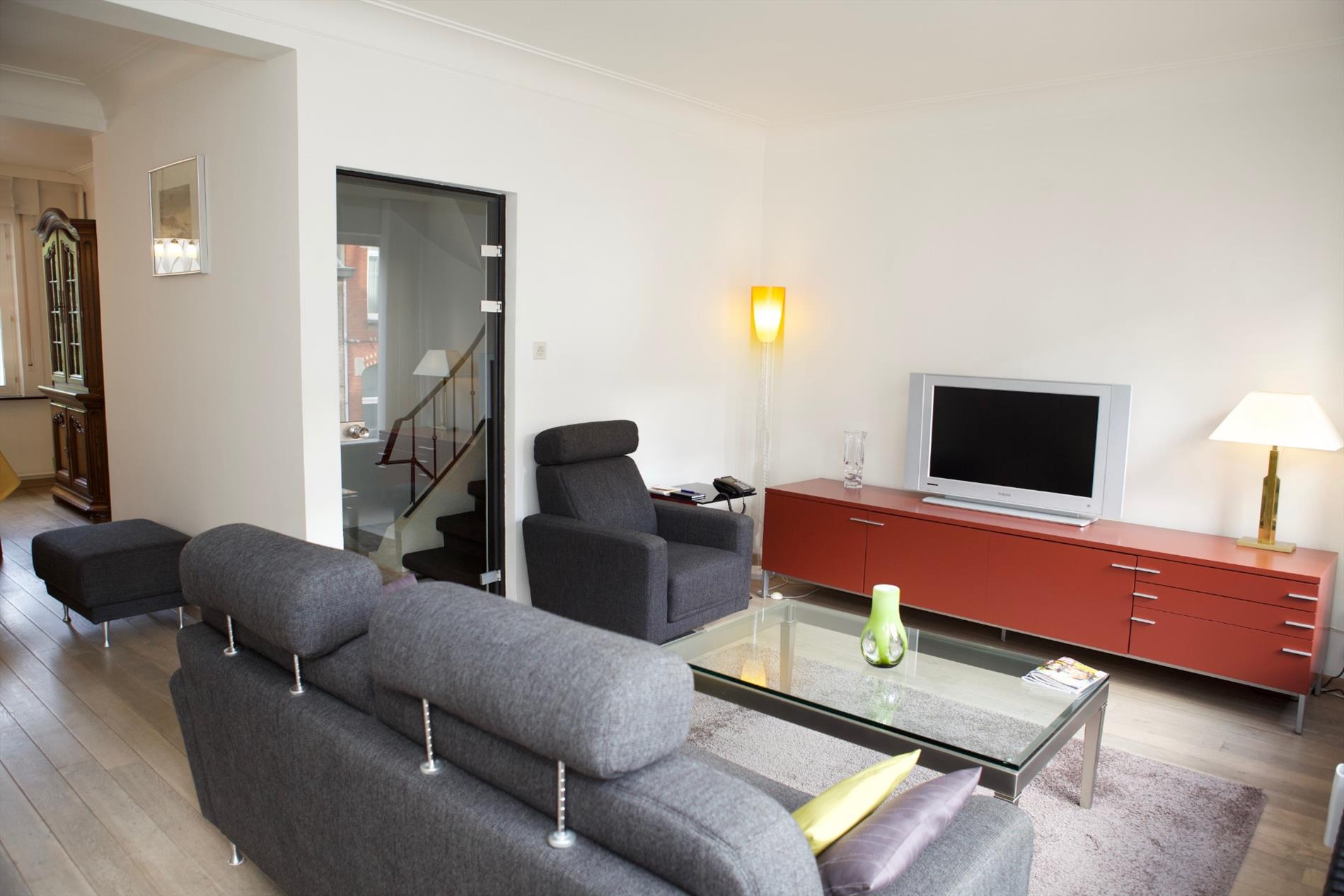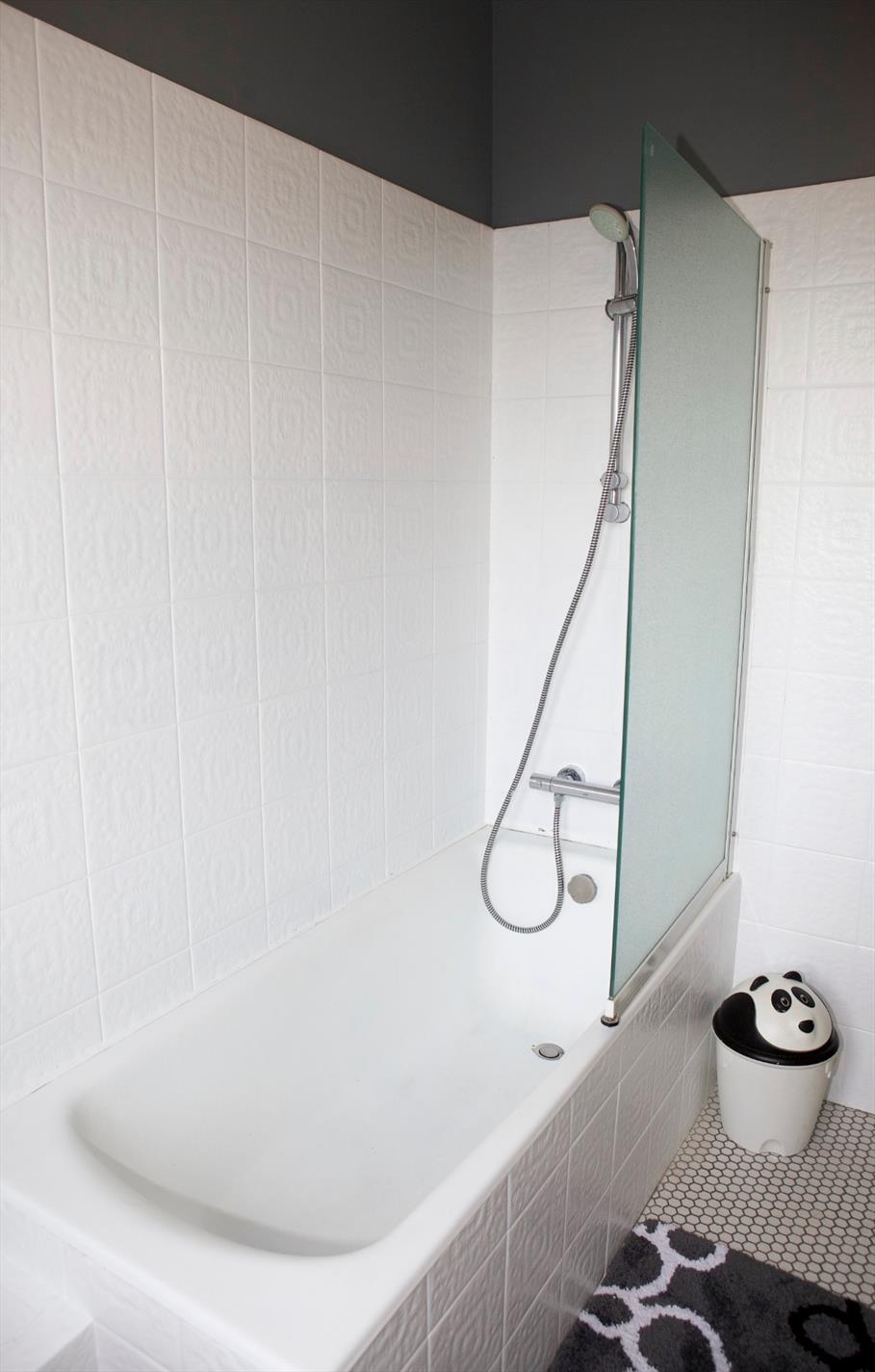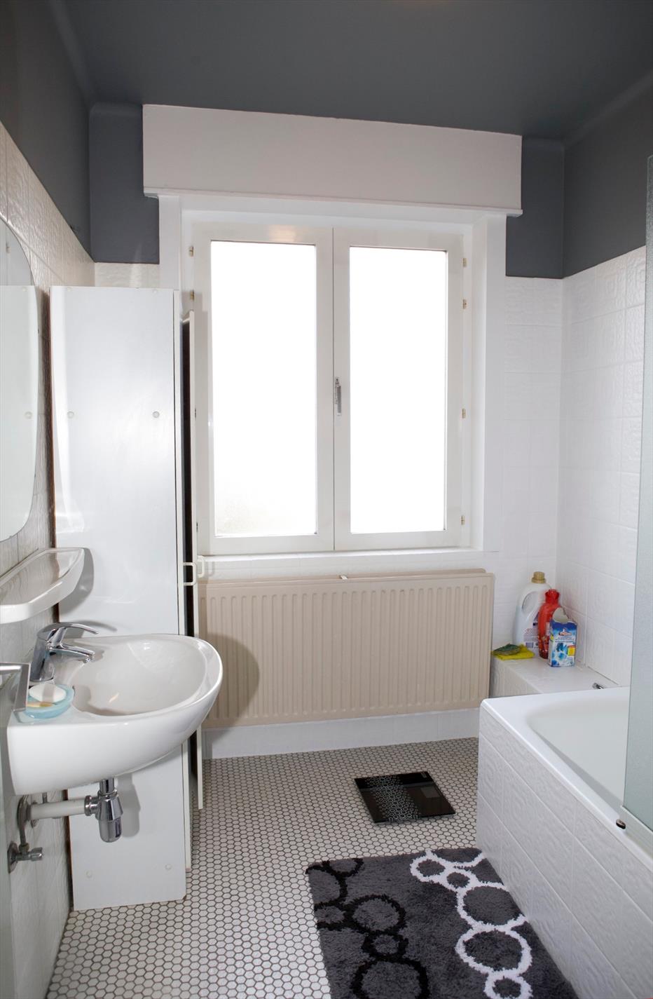 2de verdiep: overloop + ingemaakte kasten,- 2 voor-slaapkamers (3,50 x 3,50 en 3,60 x 2,12),- toilet (glazen deur),- badkamer met lavabo, en ligbad (+ glazen douchescherm),- en achter-slaapkamer (3,62 x 3,52) + ingemaakte kasten ;