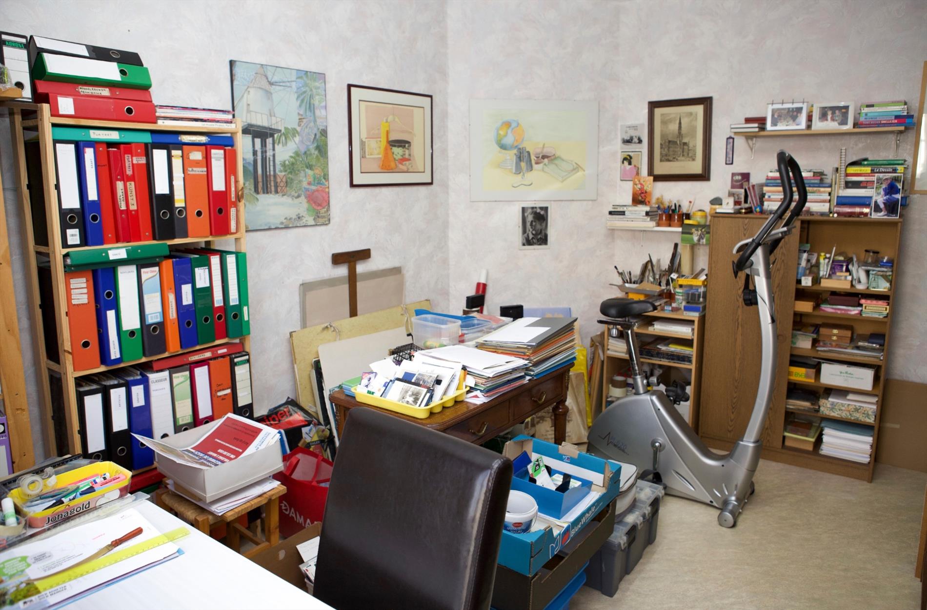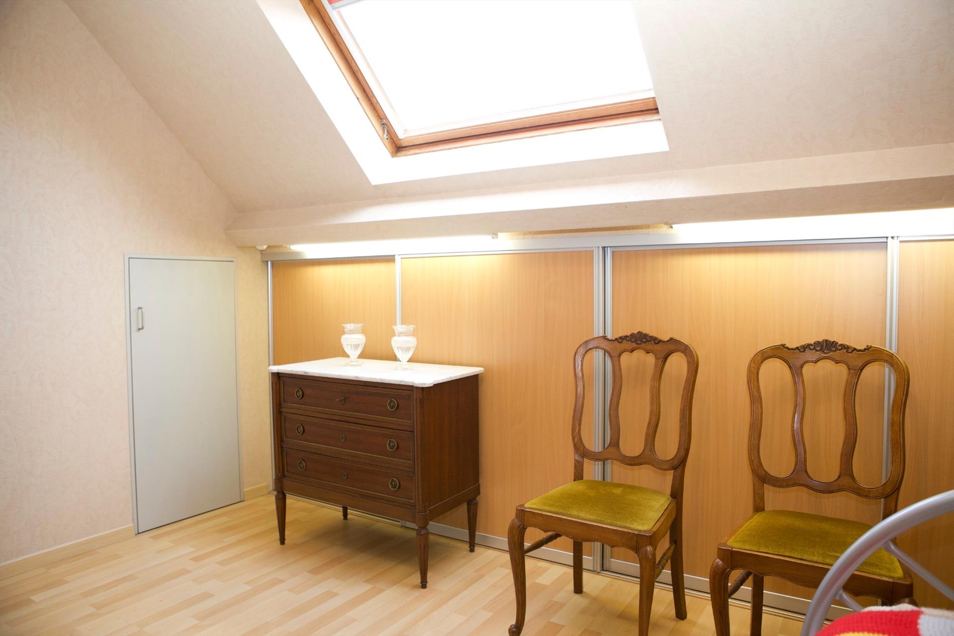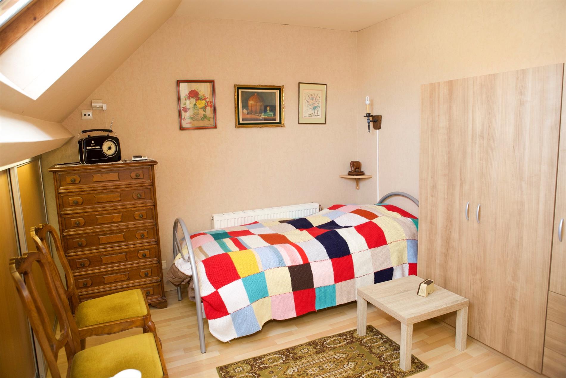 c) zolderverdieping: overloop,- achter-slaapkamer (4,05 x 4,01 * nu ingericht als bureau) met inbouwkasten, en groot veluxraam,- berging met H.R.+ gas-wandgenerator,- voor-slaapkamer (3,95 x 3,04) met inbouwkasten en groot veluxraam,- en opperzolder ;