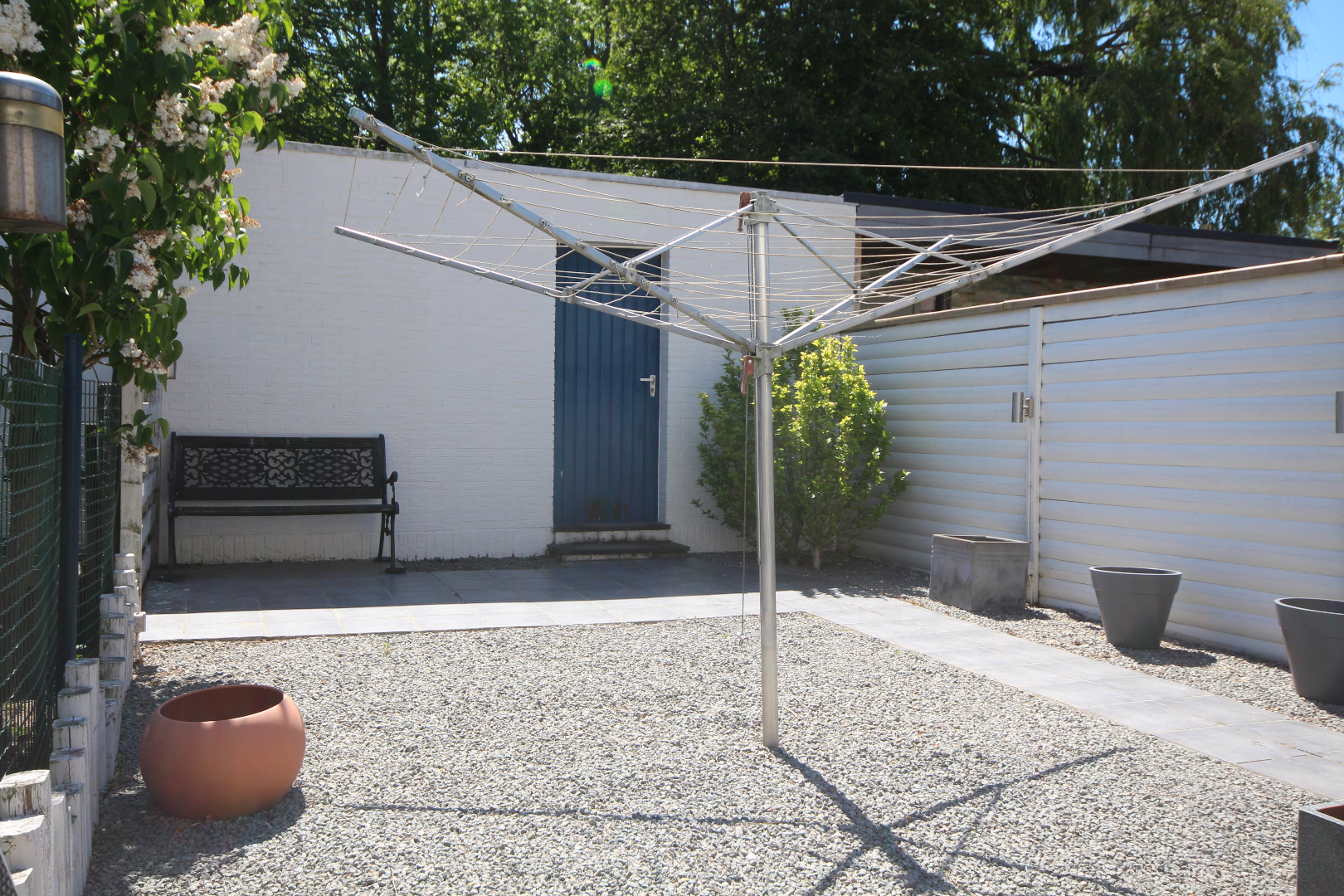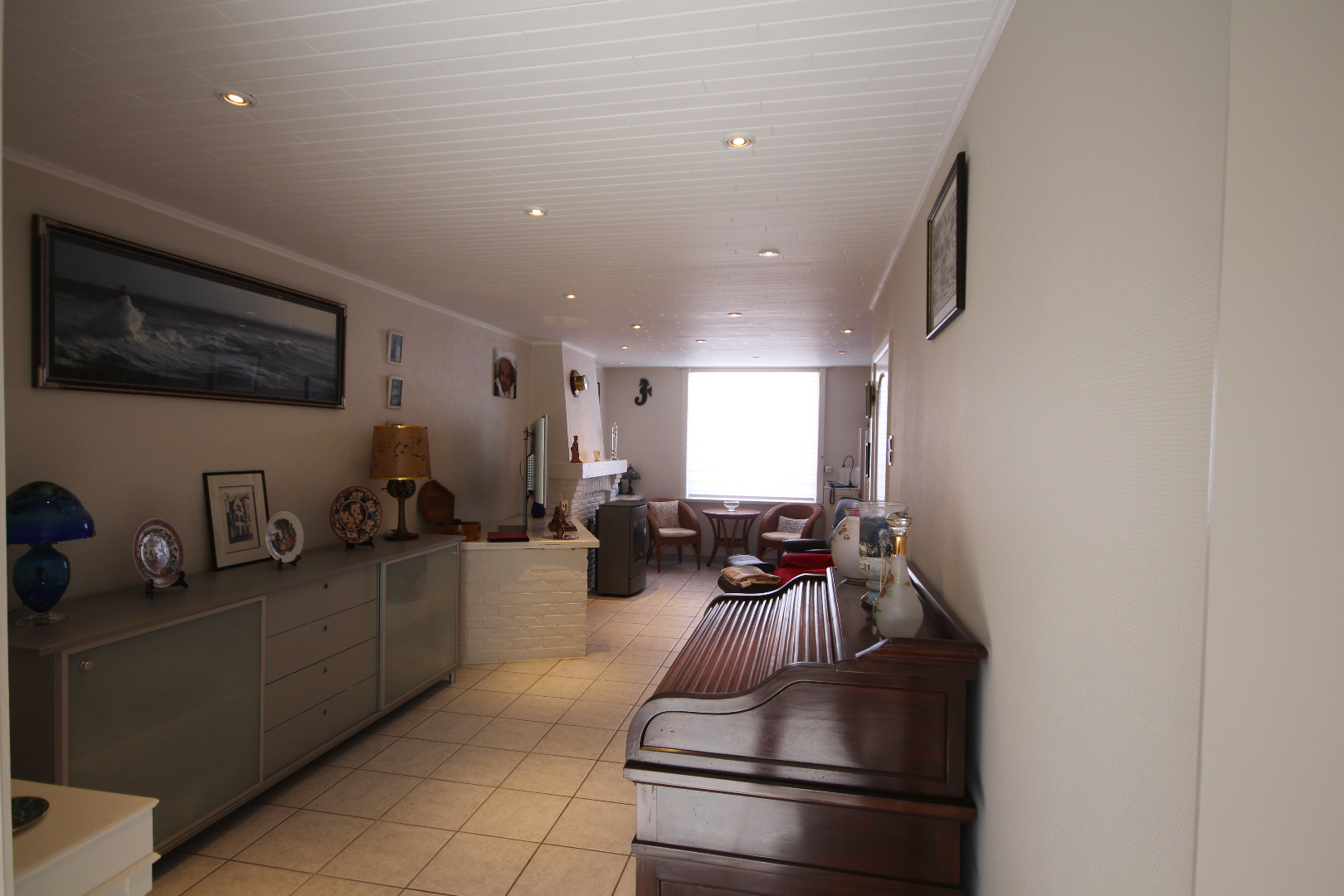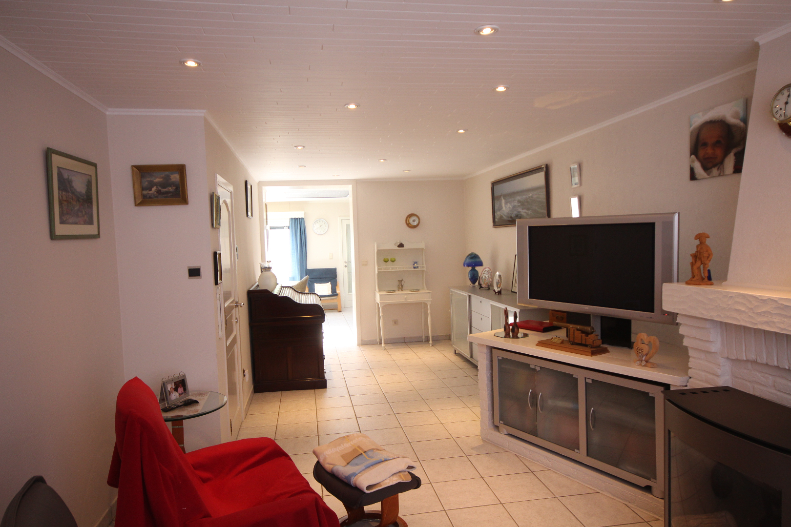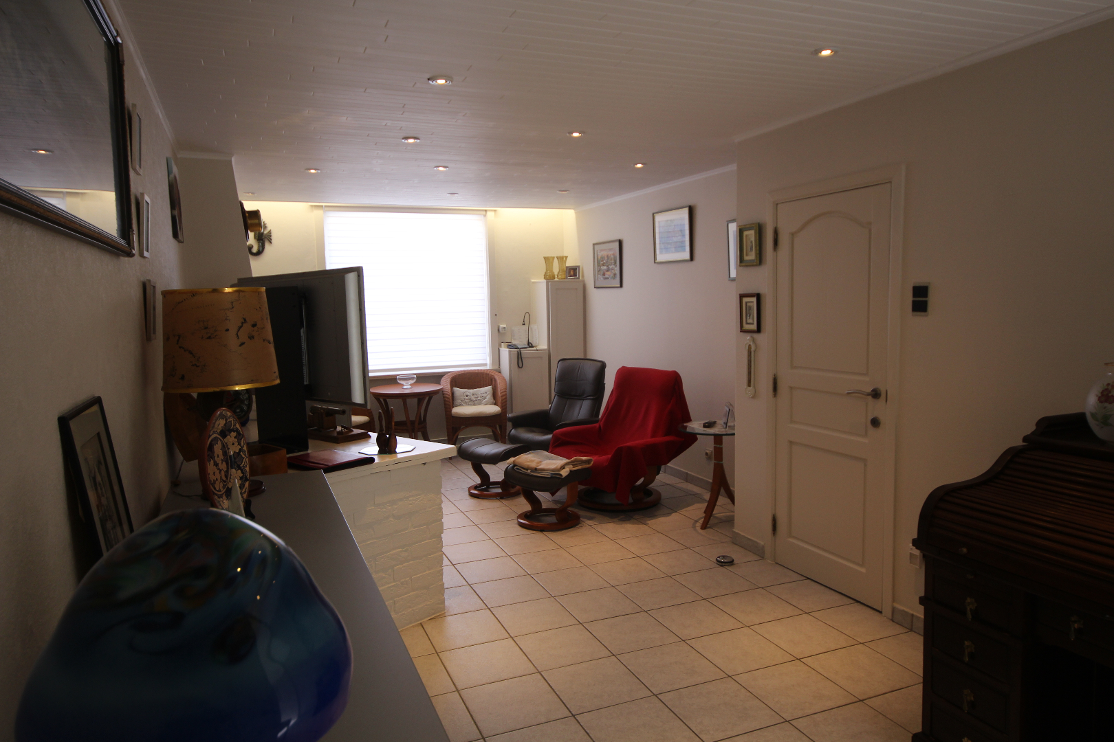 - gelijkvloers: met gang + vestiaire,- w.c. + ingemaakte kast, en meubel + lavabo (lichtkoepel),- salon (27 m²) met rustieke sierschouw + eiken balk + gashaard,- aanbouw met eetplaats-keuken (17 m²) met gaskachel & airco, grote lichtkoepel, en L-vormige keukenblok (onder- en bovenkasten in donker-grijze meubelplaat) + ingebouwde gas-kookplaat, hang-dampkap in inox, micro-combi-oven, frigo, en dubbele afwasbak in kunststof,- sas met zekeringkast, SMA-Solar netgekoppelde omvormer (zonnepanelen), ingebouwde kast, koerdeur, zolderluik, en aansluiting voor was- & droogautomaat,- zolderberging (boven de annexe),- badkamer met regendouche, w.c., L-vormige toiletmeubel + ingebouwde lavabo + spiegelkast, en kast met hydrofoor + gasgeiser,- zonnige koer (4,25 x 2,25),- zonneterras (4,68 x 4) + kiesel-tuintje (10,40 x 4,68) + fontein,- en achtergebouw (25,30 m²) met garage + elektrische sectionale poort en werkplaats,- en oprit in betonnen klinkers ;