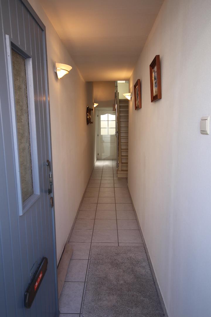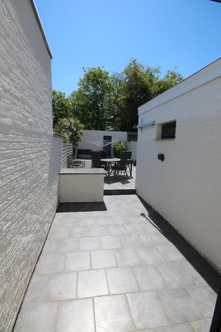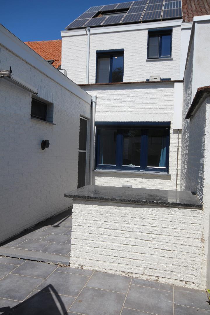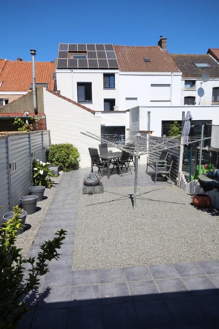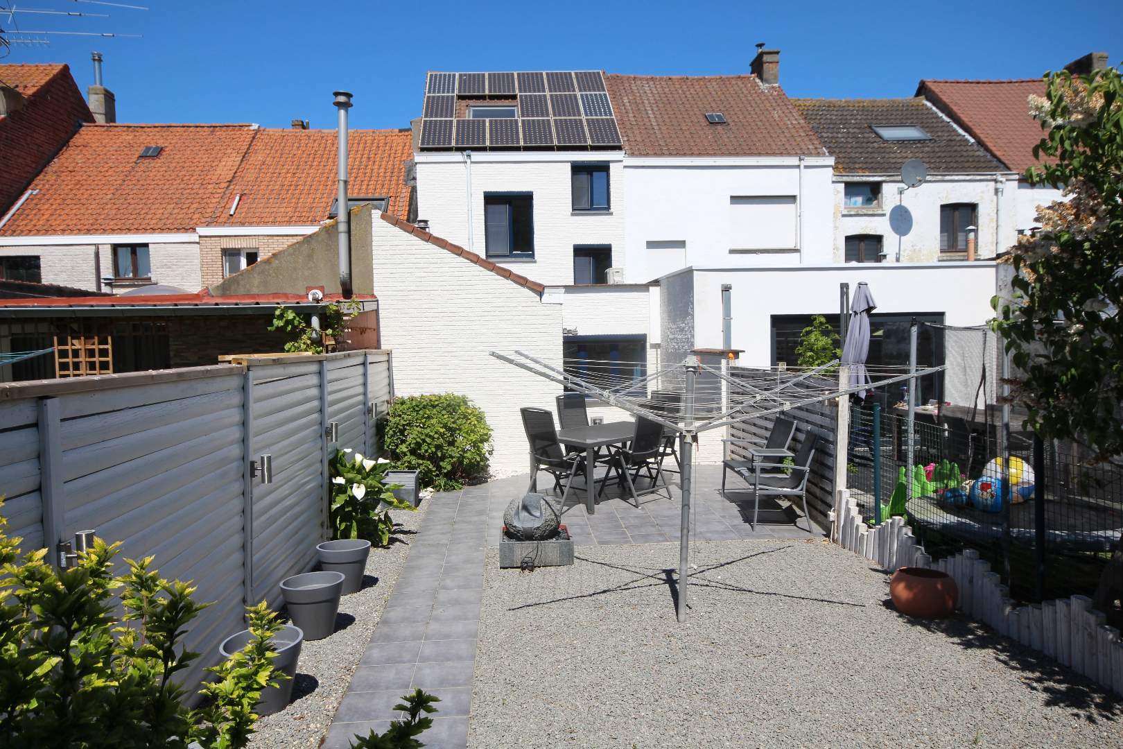 Mooi & knus ingerichte rijwoning met zonnige koer + zonneterras & kiezeltuintje (+ fonteintje), en aparte garage-gebouw + autostandplaats (8 m. lang). Stevig en op traditionele wijze opgetrokken in 1938, op een perceel bouwgrond van 169,33 m² (gevelbreedte: 5 m.). Verzorgde voorgevel in een paramentmetselwerk van rustieke baksteen + onderplint in arduin. Achter- en annexegevels zijn uitgevoerd in baksteen + cementbezetting. Deur- en vensterdorpels in harde blauwsteen. Verzorgd zadeldak + onderdak in menuiserite + isolatie (rockwoll 10 cm.), belegd met rode Pottelbergse pannen (vlak dakraam in voor- en achterdak), en voorzien van 16 zuid-gerichte zonnepanelen. Zinken dakgoten + bekleding in kunststof. In 2005 werd de woning gans gerenoveerd, en werd een aanbouw opgetrokken a/d achtergevel met een geïsoleerd platform in EPDM (boven keuken-eetplaats) + airco-unit. Verzorgd buitenschrijnwerk, vooraan in Meranti hout en achteraan in PVC + dubbele beglazing. Geautomatiseerde PVC-rolluiken vooraan en zonnescreening achteraan. Duurzame ceramieke tegelvloeren beneden, en laminaat-parket op de verdieping. Verlaagde plafonds + inbouwspotjes in de gang, salon, keuken-eetplaats, badkamer, en slaapkamers. Nieuwe trap (in beuk) + nox balustrade & leuning. Nieuwe binnendeuren. Nieuw aangelegde koer & terras (grijze tegelvloer). Marmeren venstertabletten. Bruikbare vloeroppervlakte: 144 m², beschermd volume: 464 m³. Voorzien van stads- en regenwater, elektriciteit, aardgas, teledistributie, telefoon, airco, verwarming met aardgas-radiatoren, en riolering.