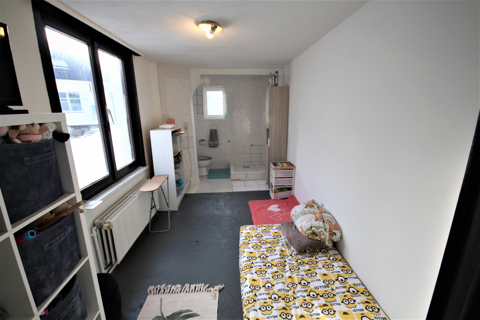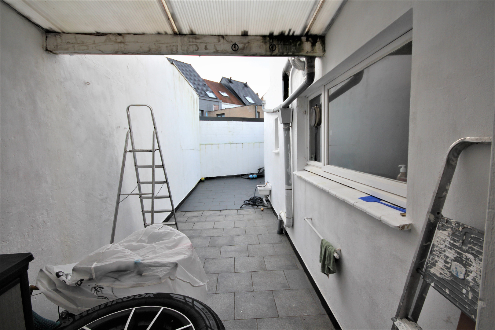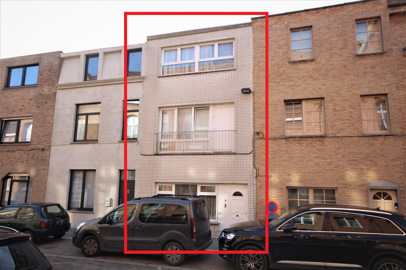 Rustig gelegen woonhuis op de aangename volkswijk Sint-Jan, stevig en op traditionele wijze gebouwd in 1972, op een perceel bouwgrond van 106 m², met een breedte van 4,95 m. op en een diepte van 21,41 m. Deze woning heeft een bebouwde oppervlakte van 46 m², een bruikbare vloeroppervlakte van 140 m², en een beschermd volume van 498 m³. Verzorgde voorgevel in een paramentmetselwerk van wit-geglazuurde gevelsteen + gevelplint in arduin. Achtergevels + annexegebouw in baksteen van de streek + cementbezetting (wit-geschilderd). Deur- en vensterdorpels in harde blauwsteen. Stevige funderingen. Betonnen vloerplaat beneden, op de tussenverdiep, en op zolder. Houten roostering + plankenvloer op de verdiepingen. Geïsoleerd plat dak (+ roofing), en deels vernieuwd & goed geïsoleerd hellend pannendak + onderdak in menuiserite & veluxraam. Geïsoleerd platform (boven annexegebouw) belegd met roofing (wordt gebruikt als zonneterras). Grotendeels vernieuwd buitenschrijnwerk in witte kunststof (PVC) + dubbele beglazing. Zonnige koer belegd met keramische tegels. De elektrische installatie werd gans vernieuwd en gekeurd (dient herkeurd te worden vóór 20/10/2039). Laminaat-parket in de living. Tegelvloeren in de keuken, gang, koer, en beide badkamers. Voorzien van stadswater, elektriciteit (dag- en nachttarief), teledistributie, internet, telefoon, centrale verwarming (d.m.v. wand-generator op aardgas), en riolering.