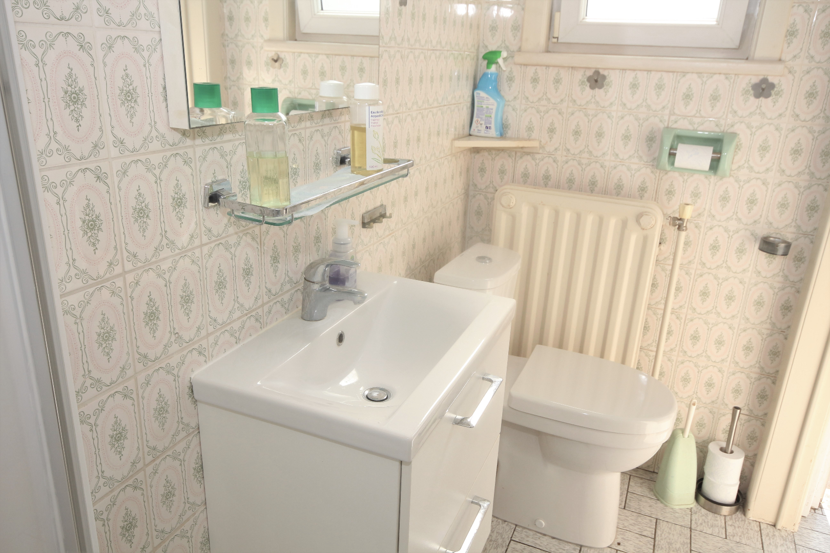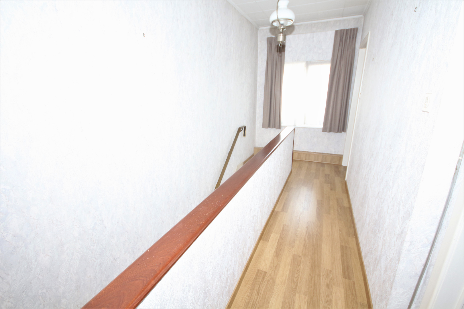- Eerste verdieping : overloop met zolderluifel,- 3 ruime slaapkamers (vooraan: 4,65 x 3 – 3,50 x 1,90 en achteraan: 3,37 x 3,10) ;