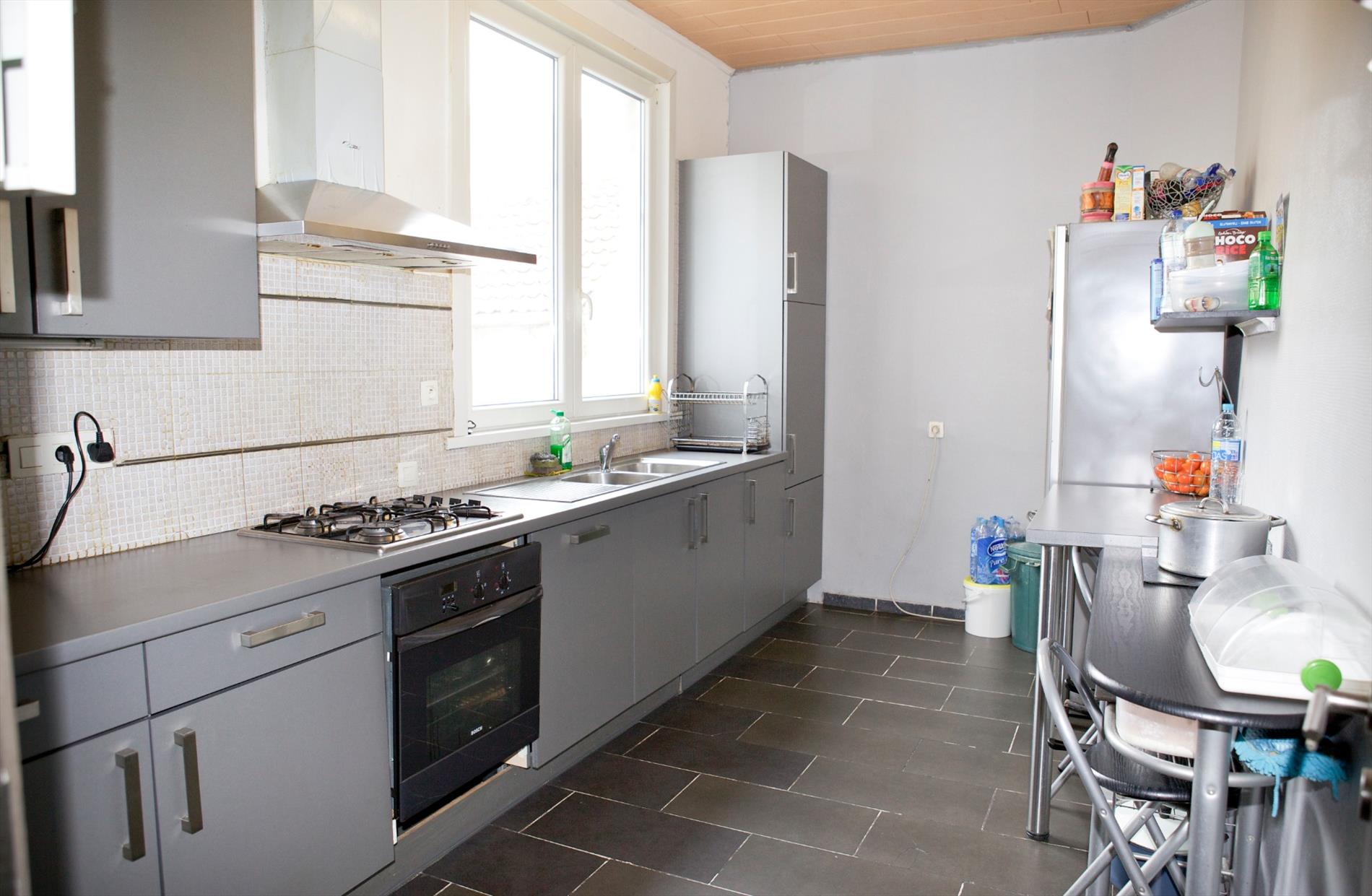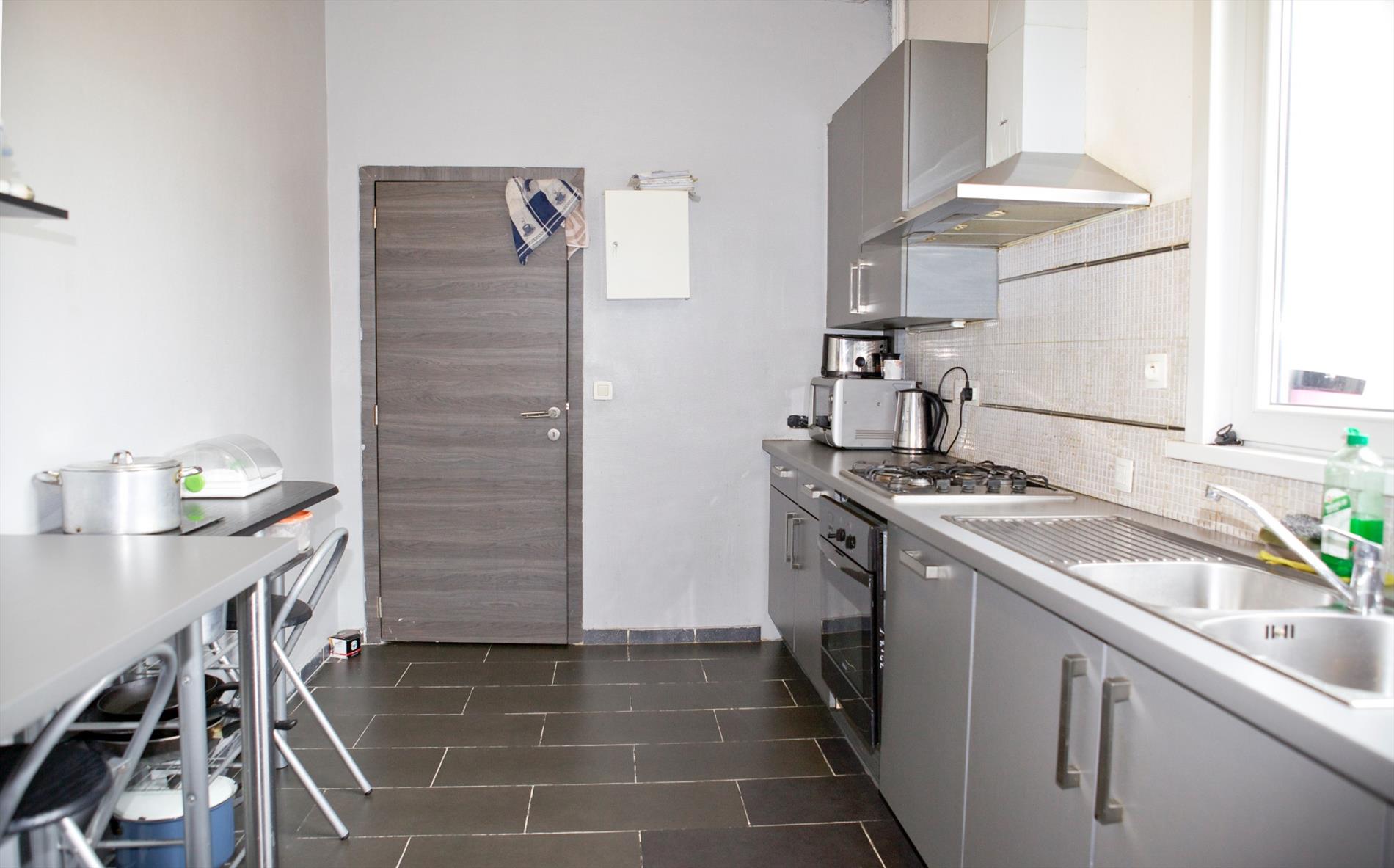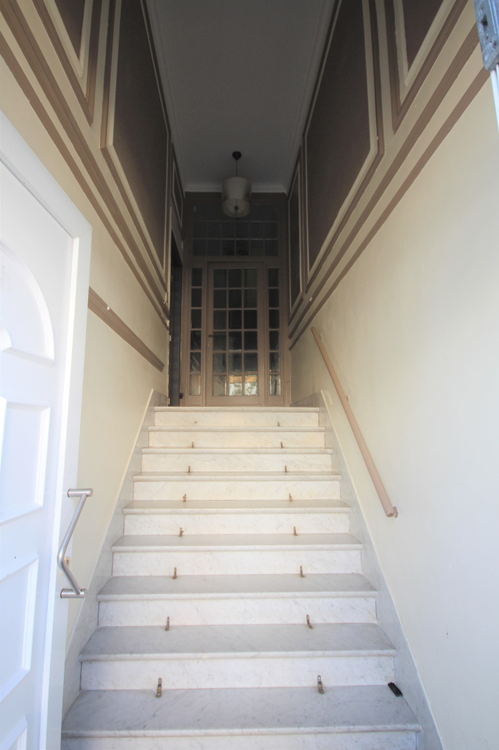 Ruim woonhuis, stevig en op traditionele wijze gebouwd in 1935 op een perceel bouwgrond met een breedte van 5,50 m. op een diepte van 25,50 m. Bruikbare vloeroppervlakte: 295,84 m² * beschermd volume: 916,43 m³. In 1983 werd de woning grotendeels vernieuwd. De elektrische en sanitaire installaties werden toen vernieuwd. Van de voor- en achterplaats in het souterrain werd een garage gemaakt. Op de bel-étage werd van de voor- en achterplaats één grote living gemaakt, en werd deze nog verruimd met een aanbouw (achteraan) + terras. Van de oude schouw werd een prachtige open haard gemaakt (in metselwerk + mantel in oude eik). Vernieuwd zadeldak, belegd met bruine sneldekpannen, met stevige kapconstructie + onderdak , en goed geïsoleerd. Vernieuwde voorgevel uitgevoerd in een paramentsmetselwerk van bruine genuanceerde gevelsteen. Deur- en vensterdorpels in harde blauwsteen. Keramische tegelvloeren in de plaatsen van het souterrain, alsook in de gang en keuken. Plankenvloeren op de verdiepingen. Imposante inkomhall met marmeren trap en tussendeur + geslepen glas. Binnendeuren in pitche’pine. Buitenschrijnwerk grotendeels in PVC + dubbele beglazing. Geschikt voor vrij beroep, maar ook voor kroostrijk gezin. Voorzien van stadswater, elektriciteit, teledistributie, telefoon, parlofoon, centrale verwarming d.m.v. aardgasgenerator, warmwaterdistributie d.m.v. aardgasgeiser, en riolering.