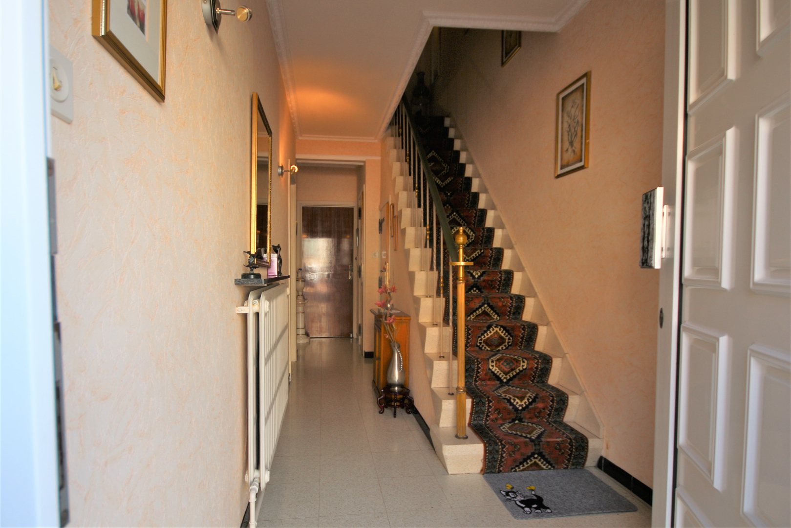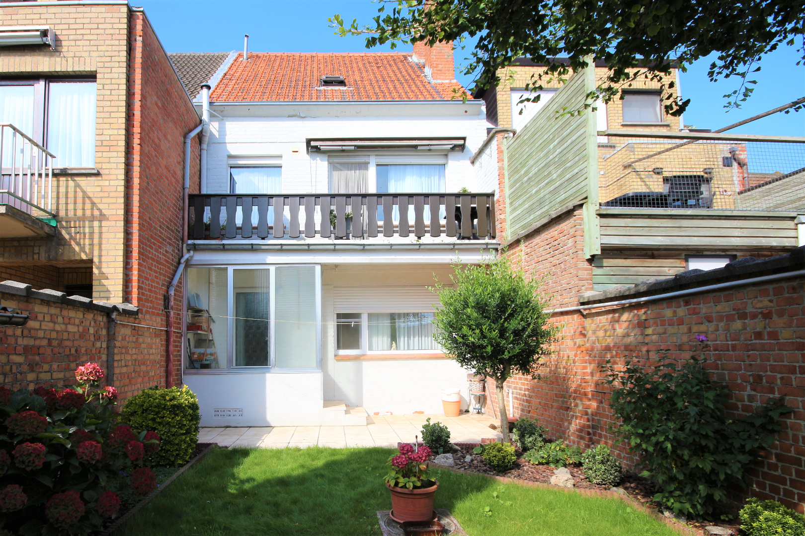 Verzorgd rijwoonhuis, stevig en op traditionele wijze gebouwd in 1965, op een perceel bouwgrond van 111 m², met een breedte van 6 m. op een diepte van 18,45 m. Zware gemetste fundering (tot op vaste bodem), en vloerplaten in gewapend beton. Voorgevel afgewerkt in silexsteen. Achtergevel in witgeschilderde baksteen van de streek met zonneterras op de verdieping. Deur- en vensterdorpels in harde blauwsteen. Verzorgd buitenschrijnwerk in witte PVC + dubbele beglazing + rolluiken. Verzorgd zadeldak, belegd met rode Pottelbergse platte pannen + onderdakplaten & standvenster in het voordak + Velux in het achterdak. Betonnen dakgoten + zinkwerk. Binnendeuren in sapoliehout. Marmeren venstertabletten. Tegelvloeren in de keuken, de terrassen, en badkamer. Novylon in de living en slaapkamers. Voorzien van stads- & regenwater, elektriciteit (dag- en nachttarief), teledistributie, telefoon, centrale verwarming, en riolering. Bruikbare vloeroppervlakte: 141 m², beschermd volume: 435 m³.