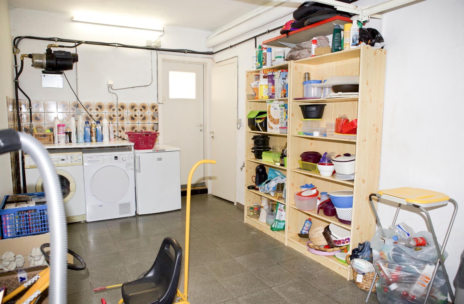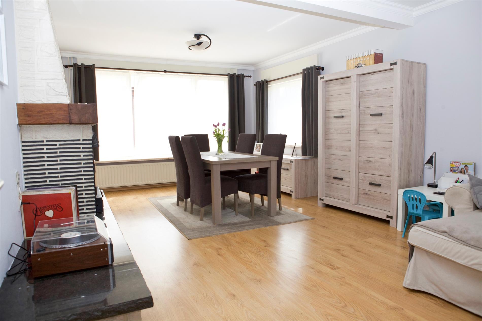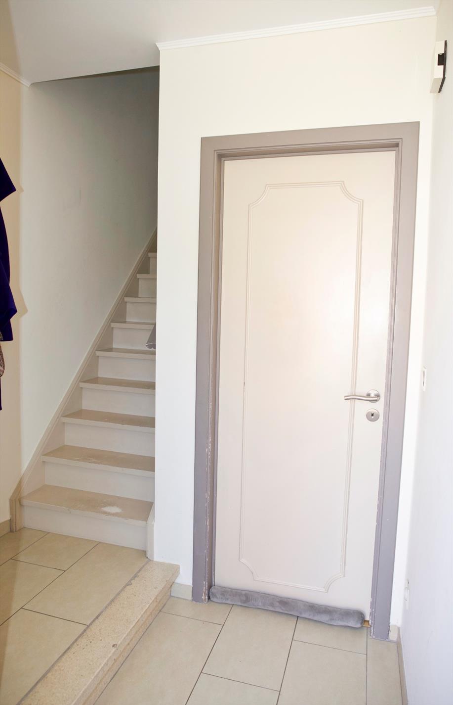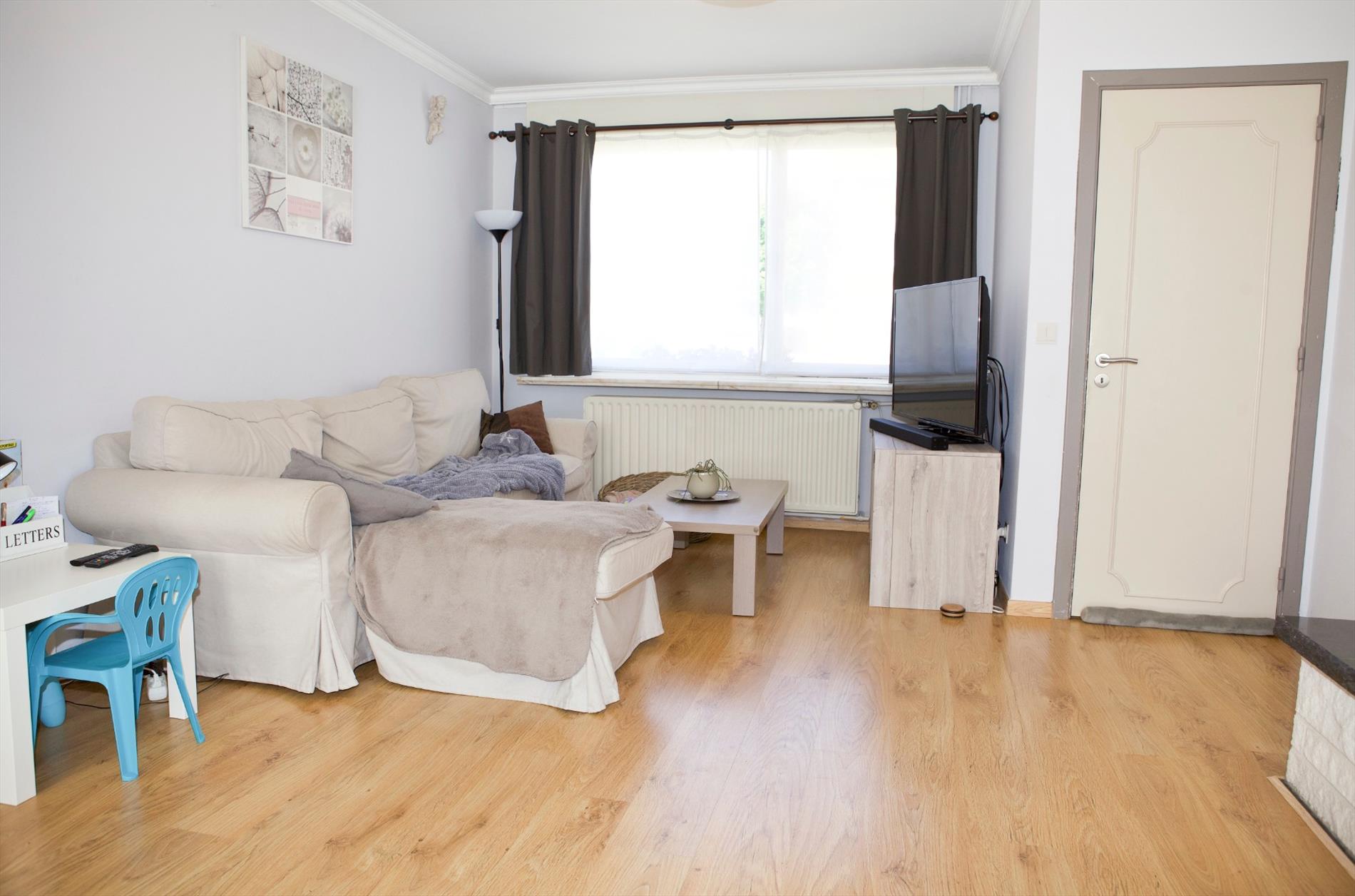 - Gelijkvloerse verdieping met : hall (trap in hout),-luchtige woonkamer (7,90 x 3,95) met sierschouw + granieten tablet en inbouwcassette (hout),- vernieuwde keuken (3,20 x 3,70 * in landelijke stijl) met van U-vormige keukenblok voorzien van onder -en bovenkasten+laden, werkblad, dubbele spoelbak in kunststof, en toestellen van AEG: vaatwasautomaat, hete-luchtoven, microgolfoven, 5 gasbekkens, dampkap, koelkast, diepvriezer,- berging (1,30 x 1) met recente CV ketel,- garage (5 x 2,70) met geïsoleerde kantelpoort, nieuwe hydrofoor, aansluiting wasautomaat,- vernieuwd toilet met hang-w.c.,- keldertje met gasteller,- veranda (2,60 x 8,20 * te renoveren) met aansluiting wasmachine,- zeer zonnige tuin (zuidoost/zuid gericht) met houten poortje, omheind met hagenbeuk en tuinhuis,- terras en voetpad in tegels (+/-36 m²),- oprit (+/-20 m²) ;