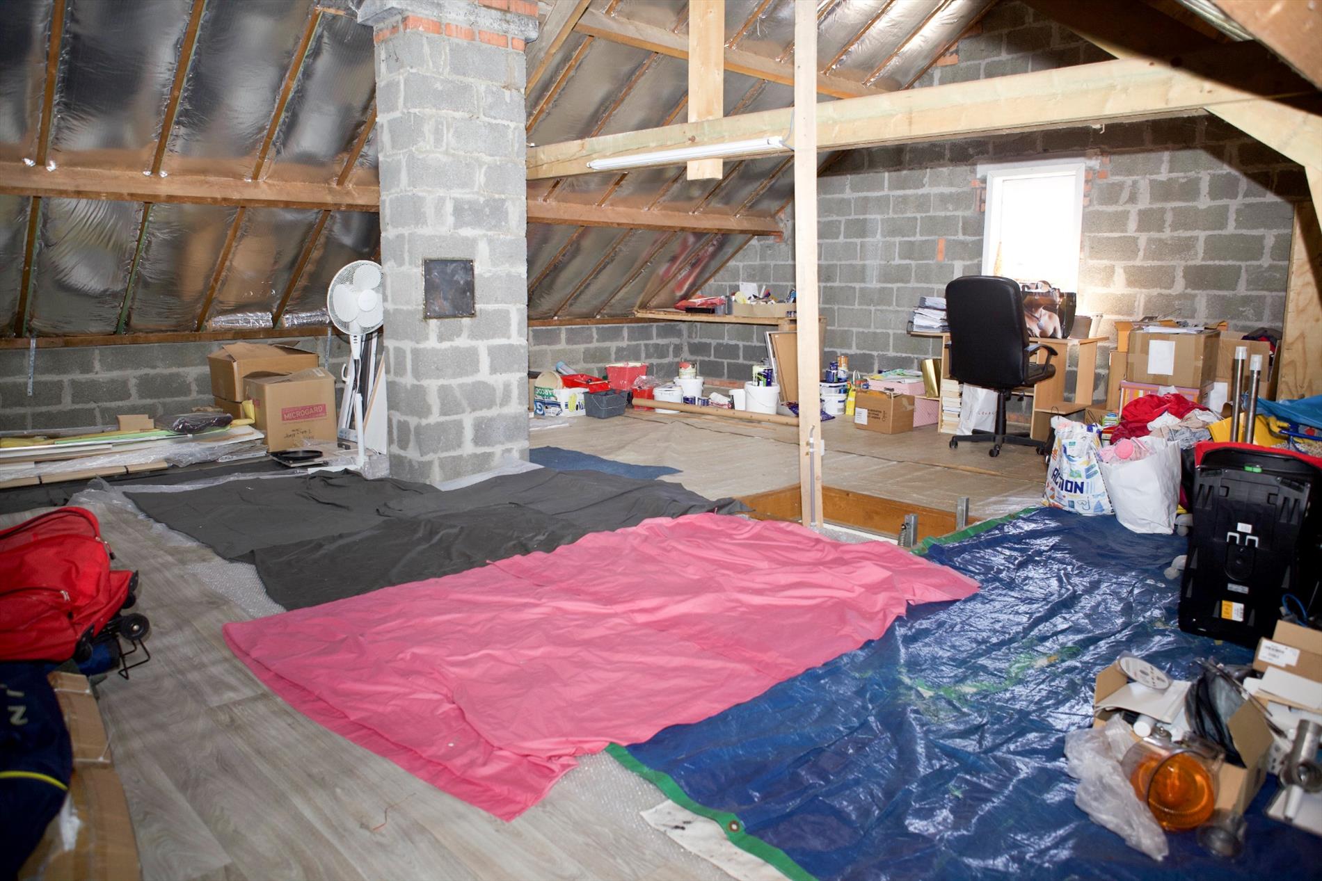 - Zolder verdieping : (7,78 x 7,90 * perfect geïsoleerd * 2 slaapkamers + badkamer mogelijk (leidingen liggen klaar)).